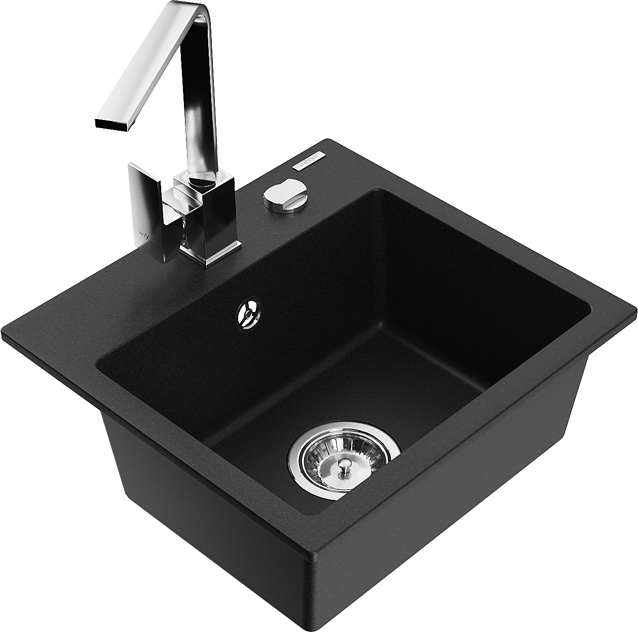 Mexen Milo 1-bowl granite sink with Rita kitchen tap, black - 6505-77-670300-00