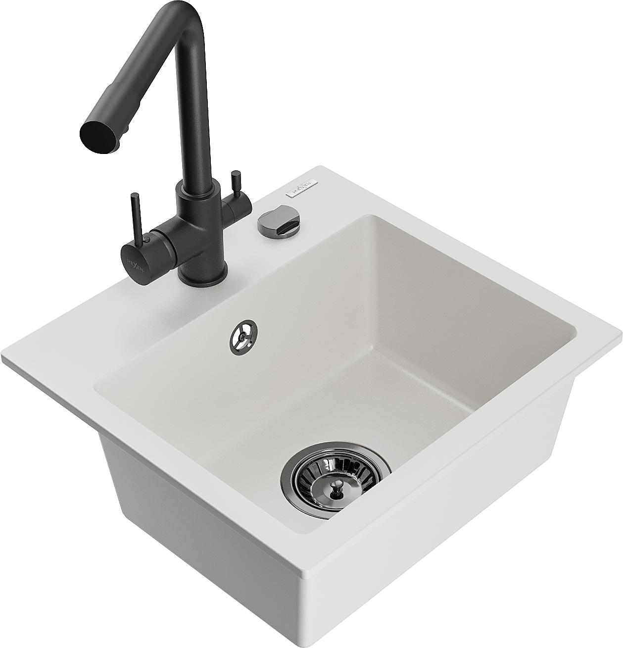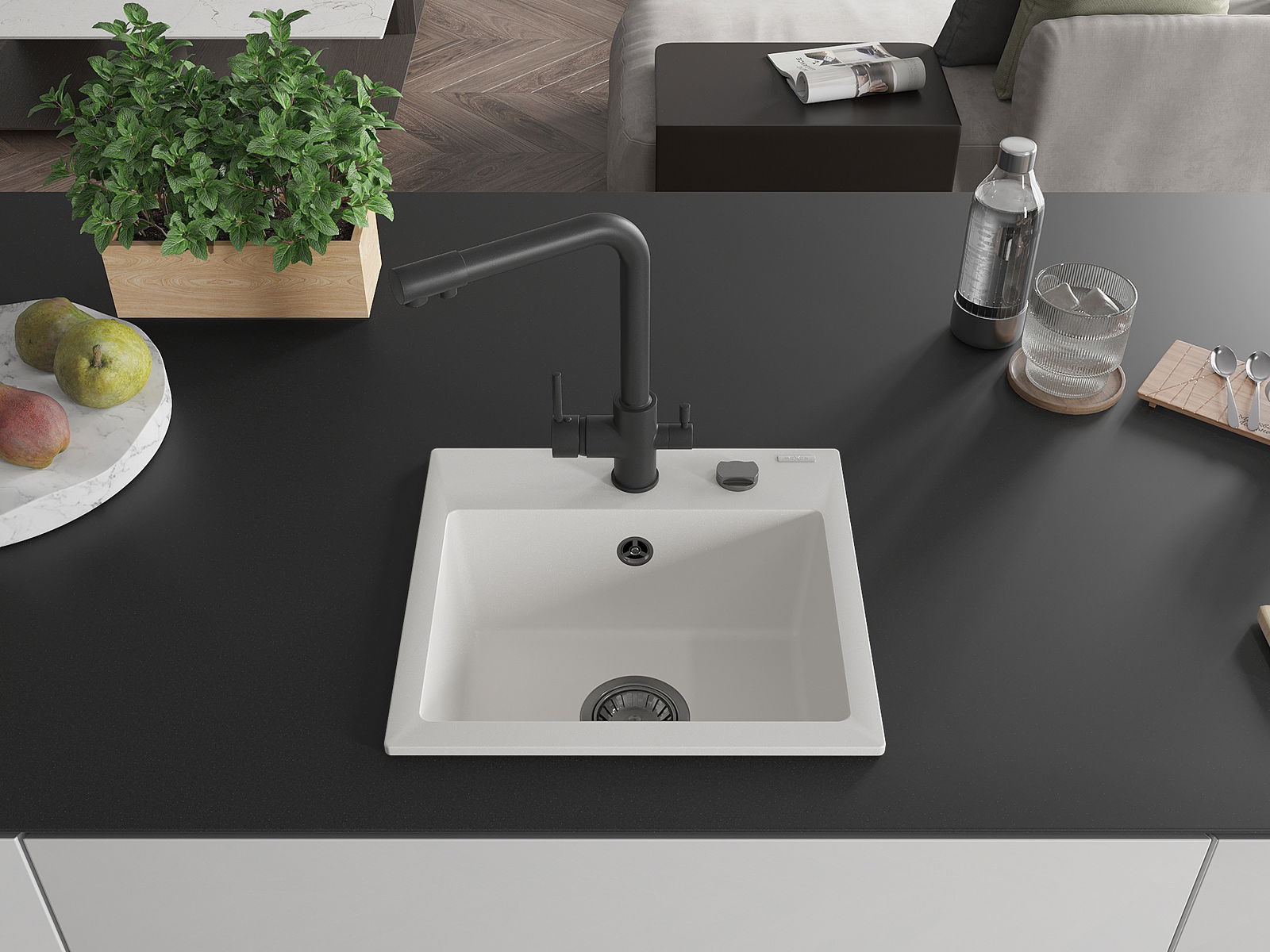 The surface of the sink is resistant to stains and discolouration, making it easy to maintain cleanliness and retain its colour for a long time of use. An aesthetic and practical addition to any kitchen.
