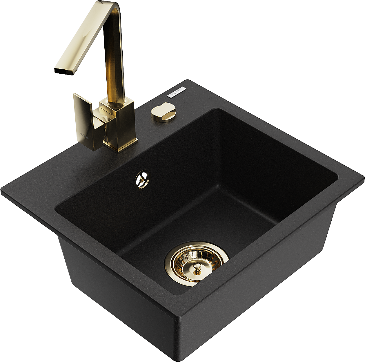 Mexen Milo 1-bowl granite sink with Rita kitchen tap, black - 6505-77-670300-50