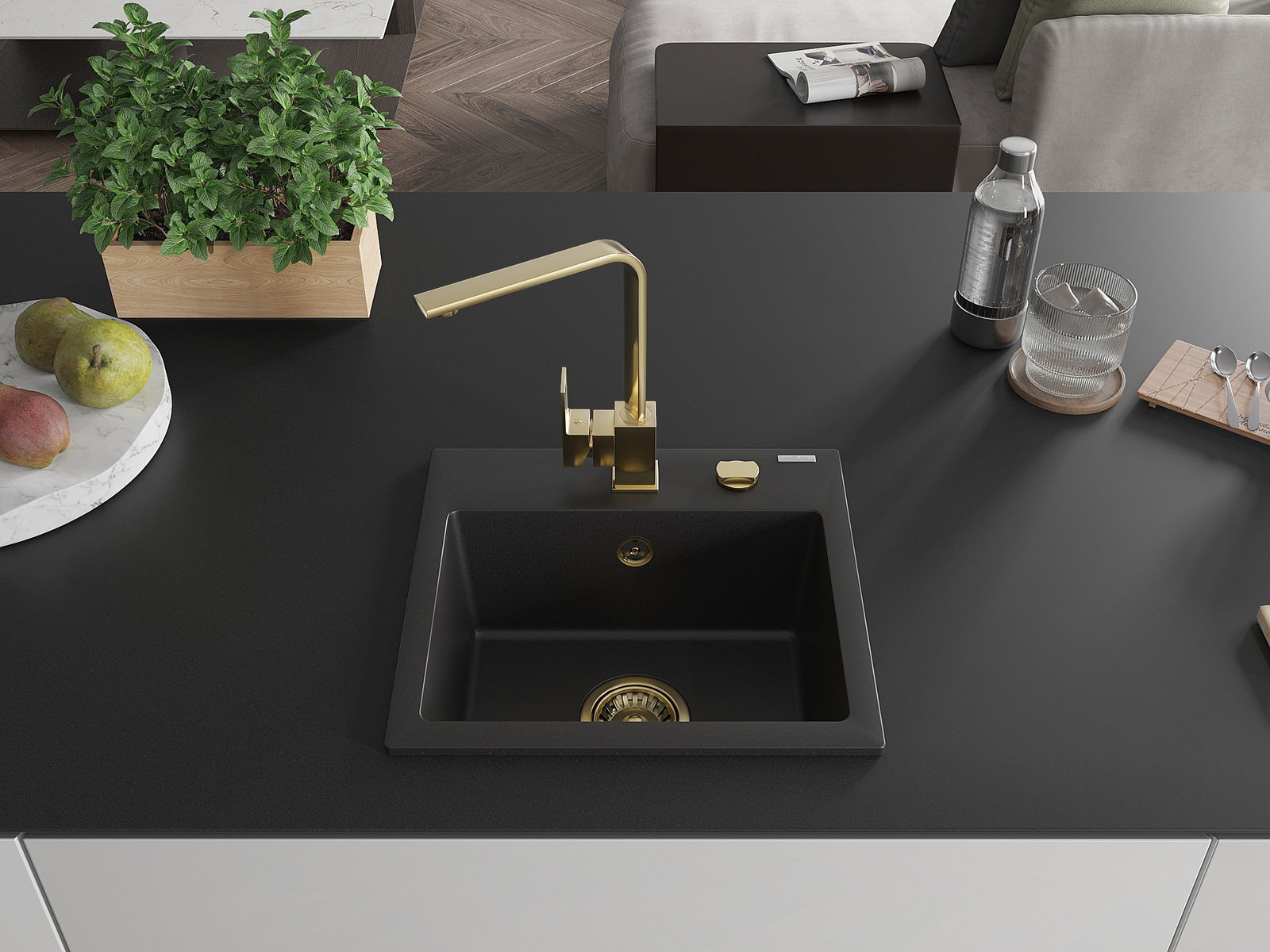 The sink is made of high quality granite. It is an elegant and, above all, practical complement to every kitchen, regardless of its style. High quality and granite durability ensure many years of use.