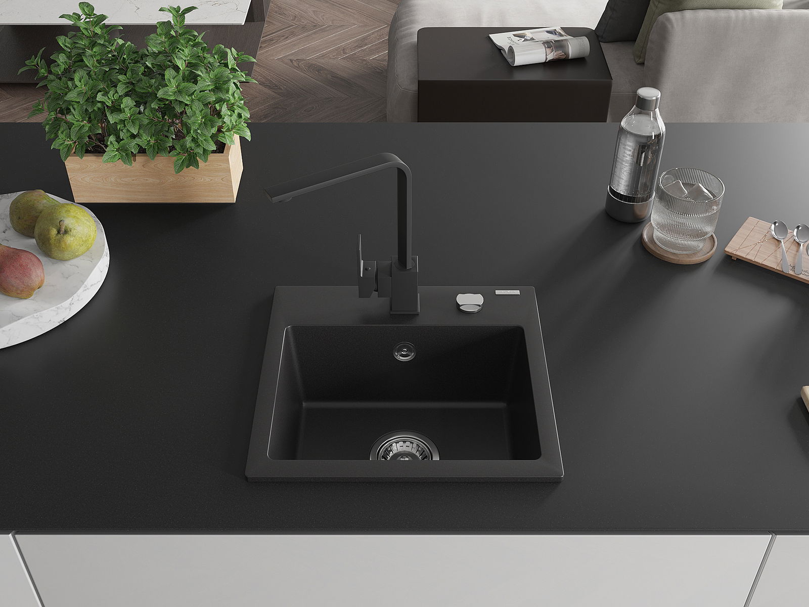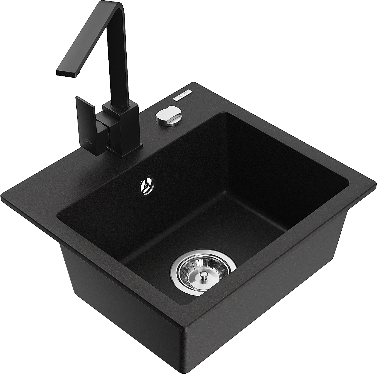 Mexen Milo granite sink single-bowl with Rita kitchen tap, black - 6505-77-670300-70