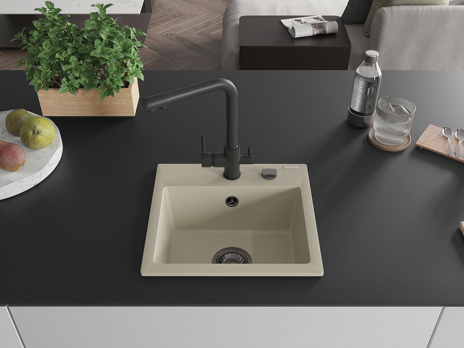 The sink is made from high-quality granite. It serves as an elegant and, above all, practical addition to any kitchen, regardless of its style. The high quality and durability of granite ensure many years of use.