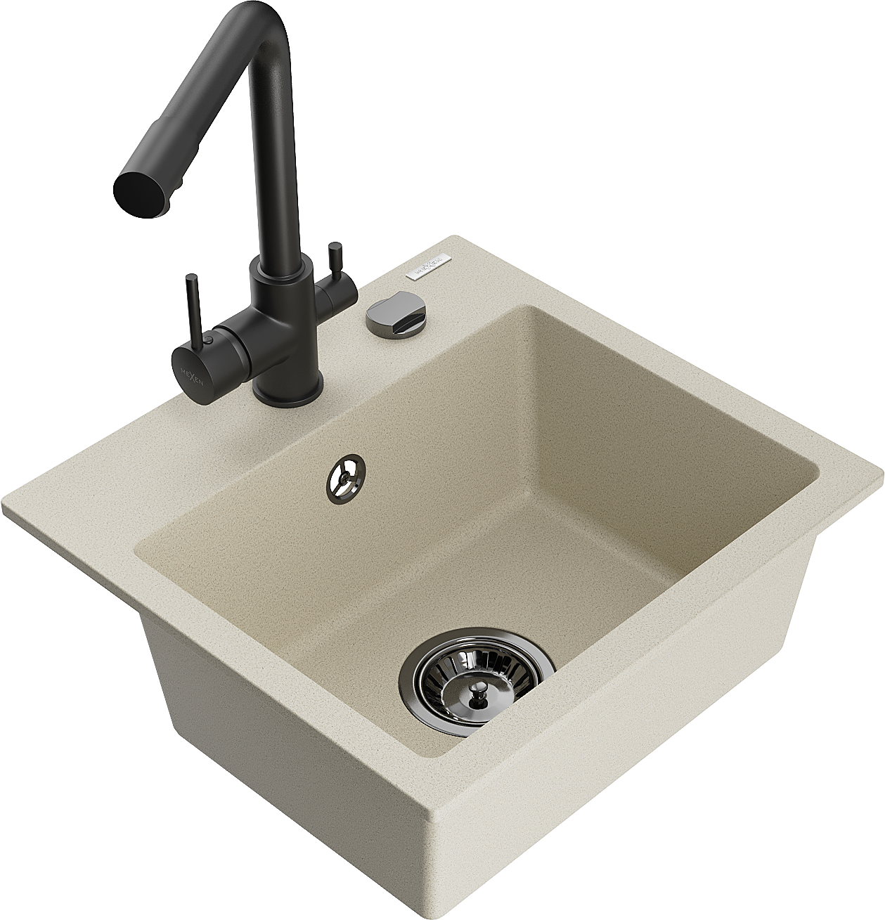 Mexen Milo 1-bowl granite sink with Duero kitchen tap, beige - 6505-69-671600-70