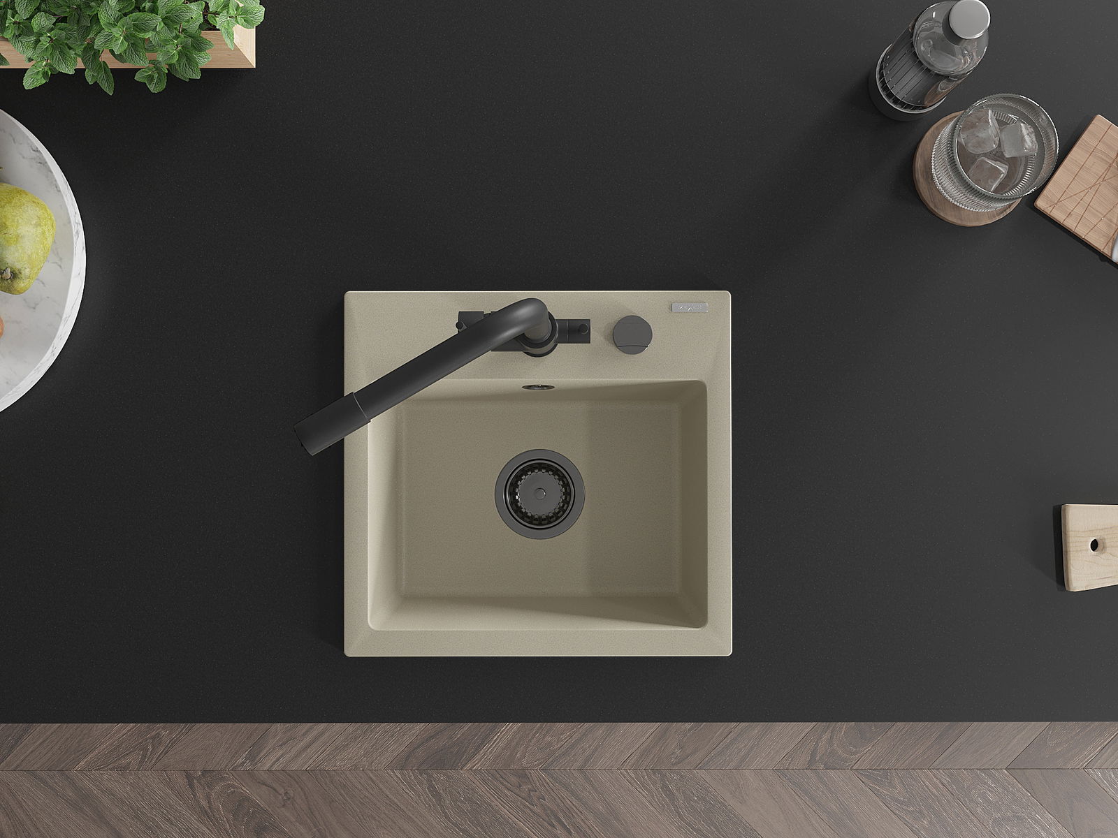 The surface of the sink is resistant to stains and discolouration, making it easy to maintain cleanliness and retain its colour for a long time of use. An aesthetic and practical addition to any kitchen.