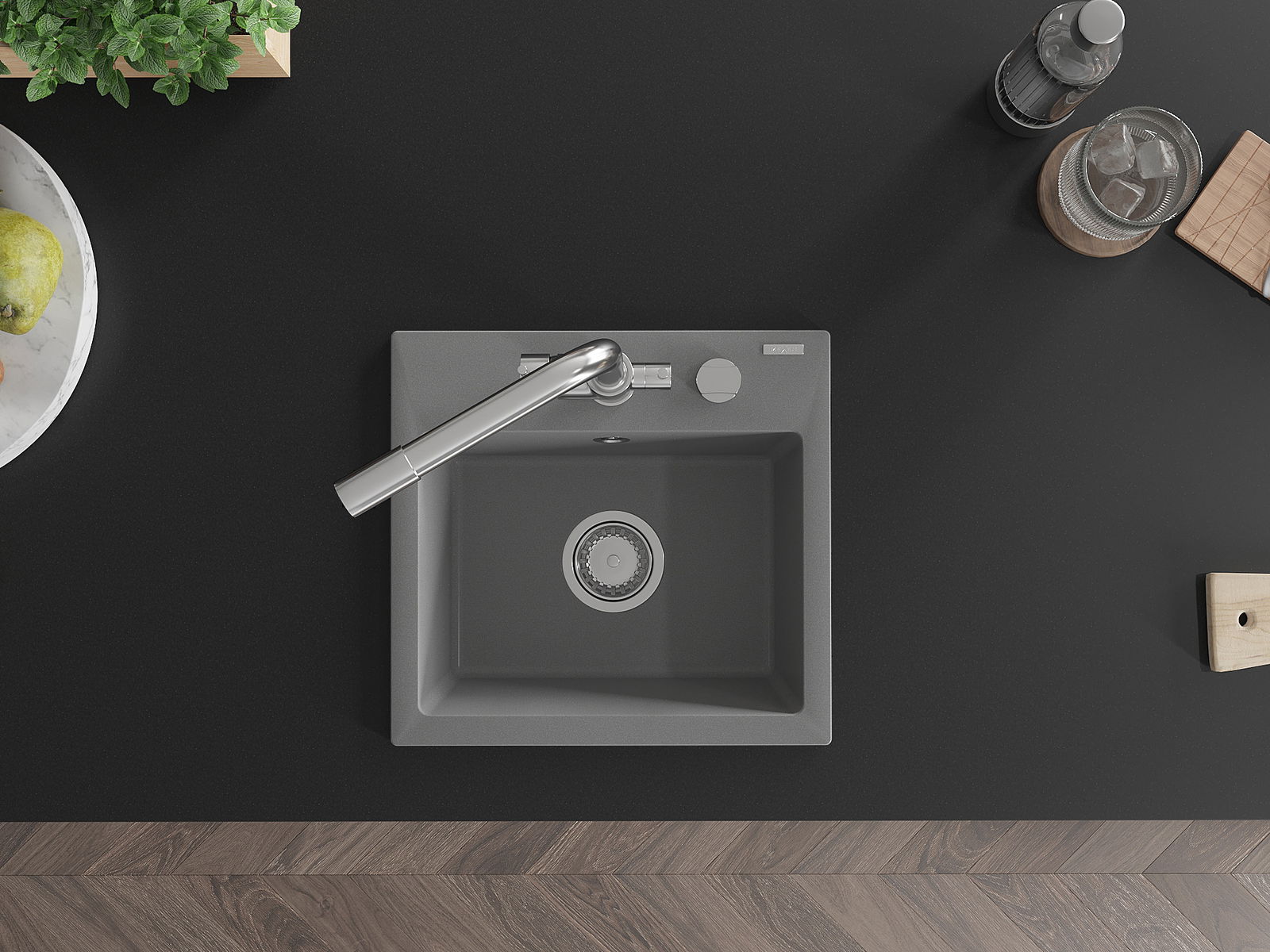 Mexen Milo single-bowl granite sink with Duero kitchen tap, grey - 6505-71-671600-00