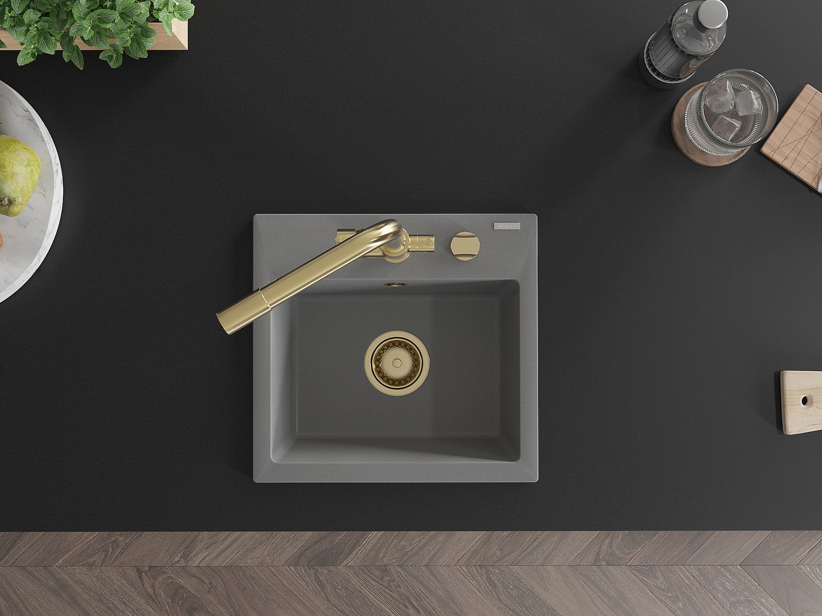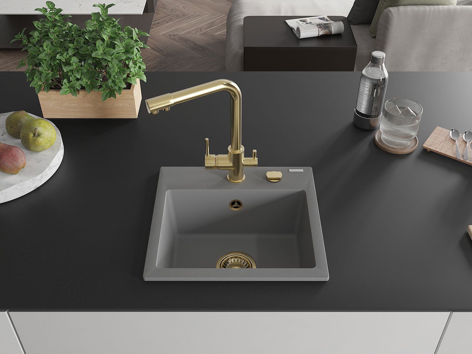 Mexen Milo granite sink 1-bowl with Duero kitchen tap, grey - 6505-71-671600-50