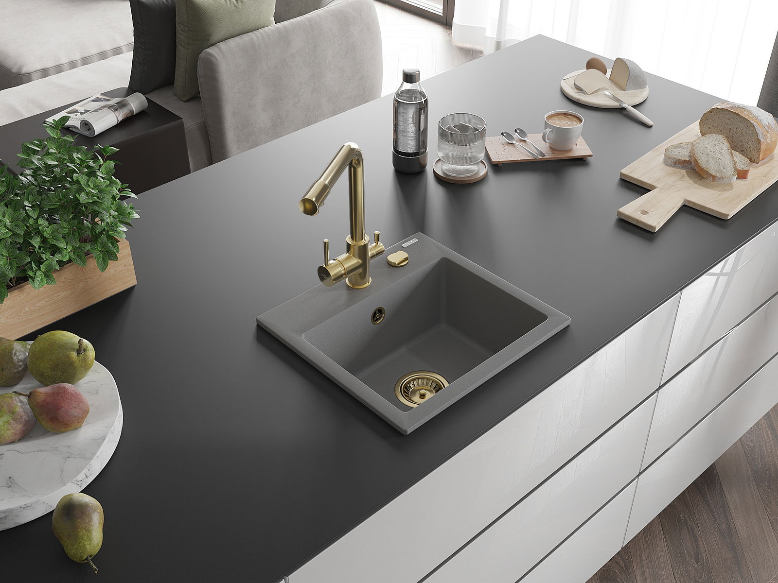 The surface of the sink is resistant to stains and discolouration, making it easy to maintain cleanliness and retain its colour for a long time of use. An aesthetic and practical addition to any kitchen.