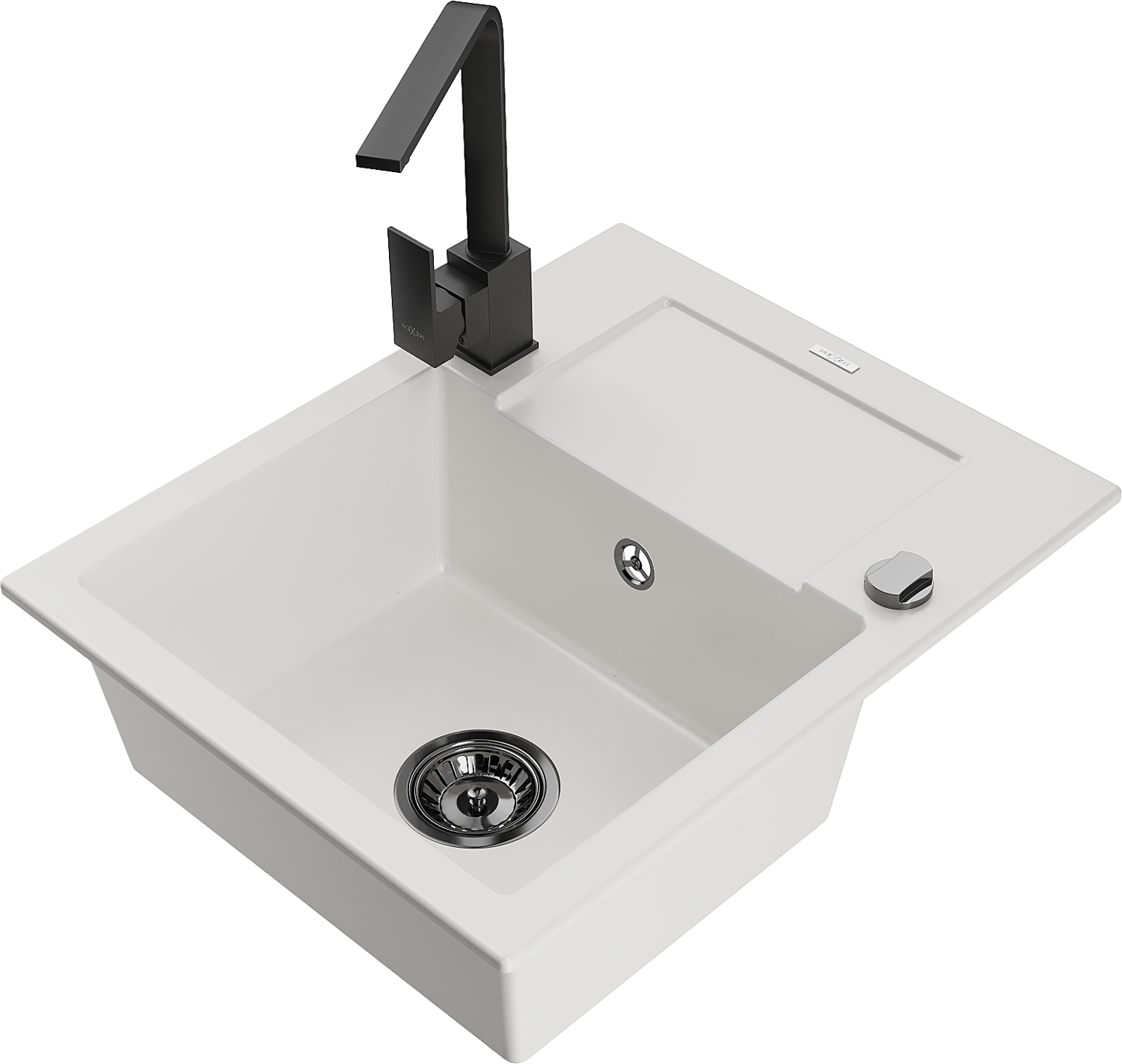 Mexen Enzo 1-bowl granite sink with drainer and Rita kitchen tap, white - 6506-20-670300-70