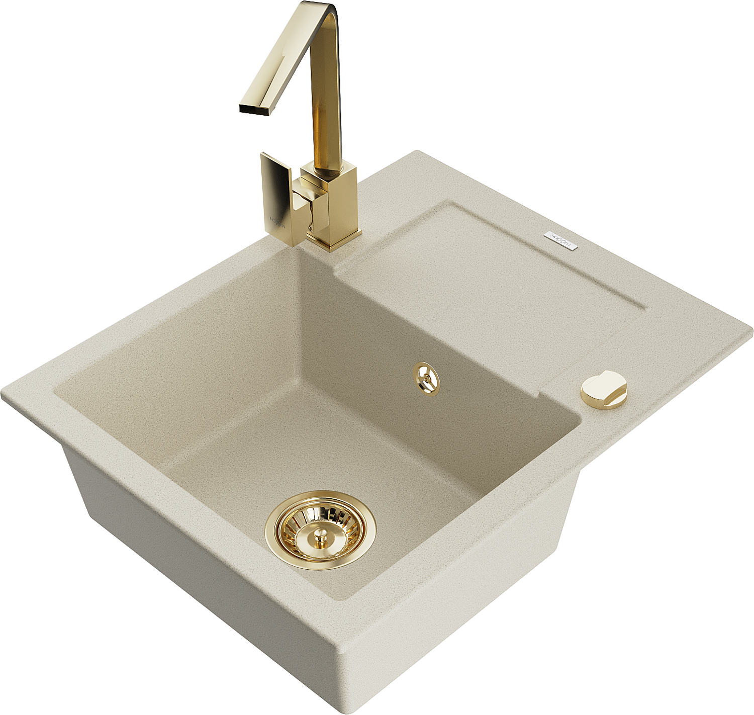 Mexen Enzo granite sink 1-bowl with drainer and kitchen tap Rita, beige - 6506-69-670300-50
