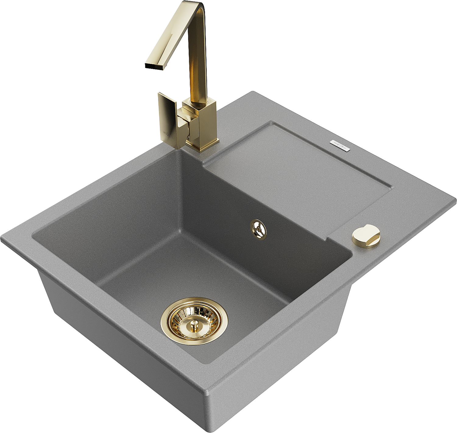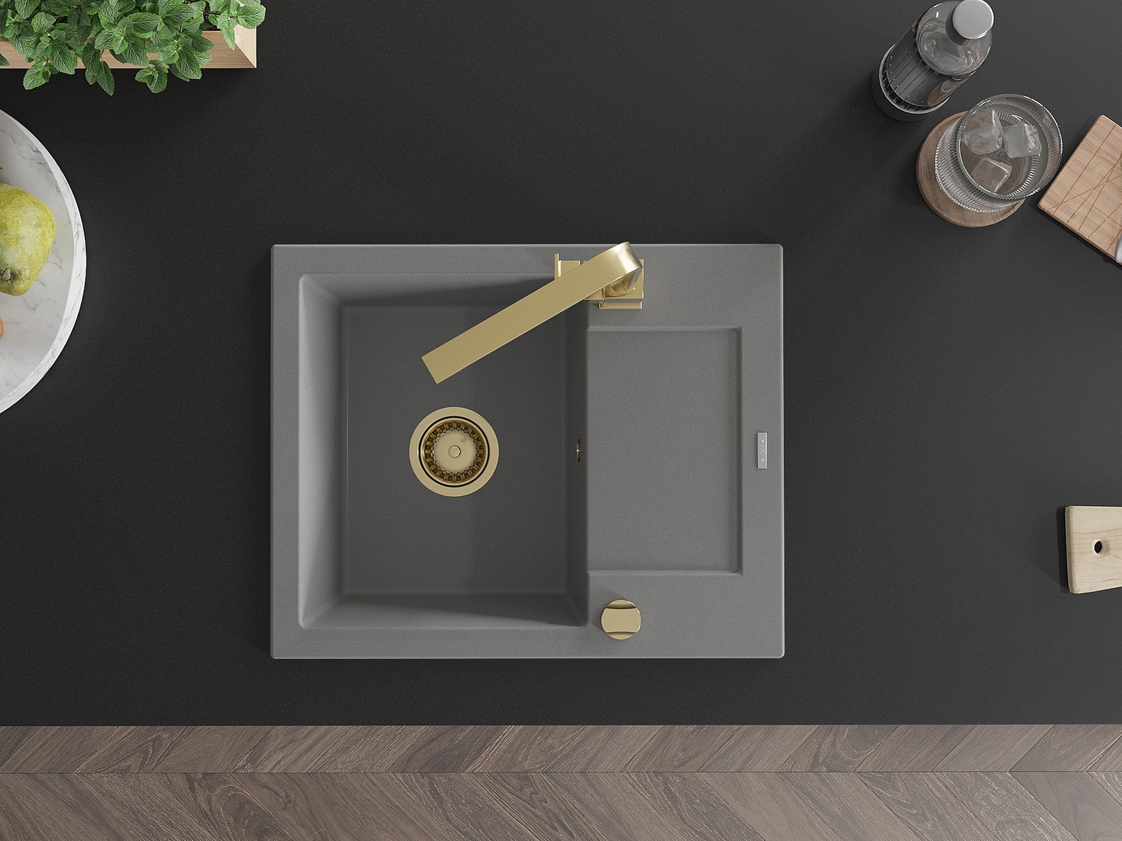 Mexen Enzo granite sink with 1 bowl, drainer, and Rita kitchen tap, grey - 6506-71-670300-50