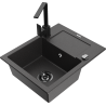 Mexen Enzo 1-bowl Granite Sink with Drainer and Rita Kitchen Tap, Black/Silver Metallic - 6506-73-670300-70-B