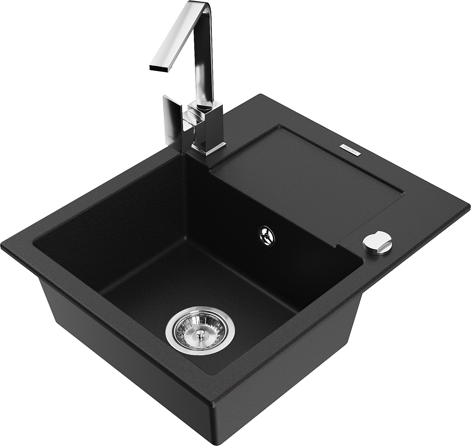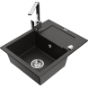 Mexen Enzo granite sink 1-bowl with drainer and Rita kitchen tap, black - 6506-77-670300-00