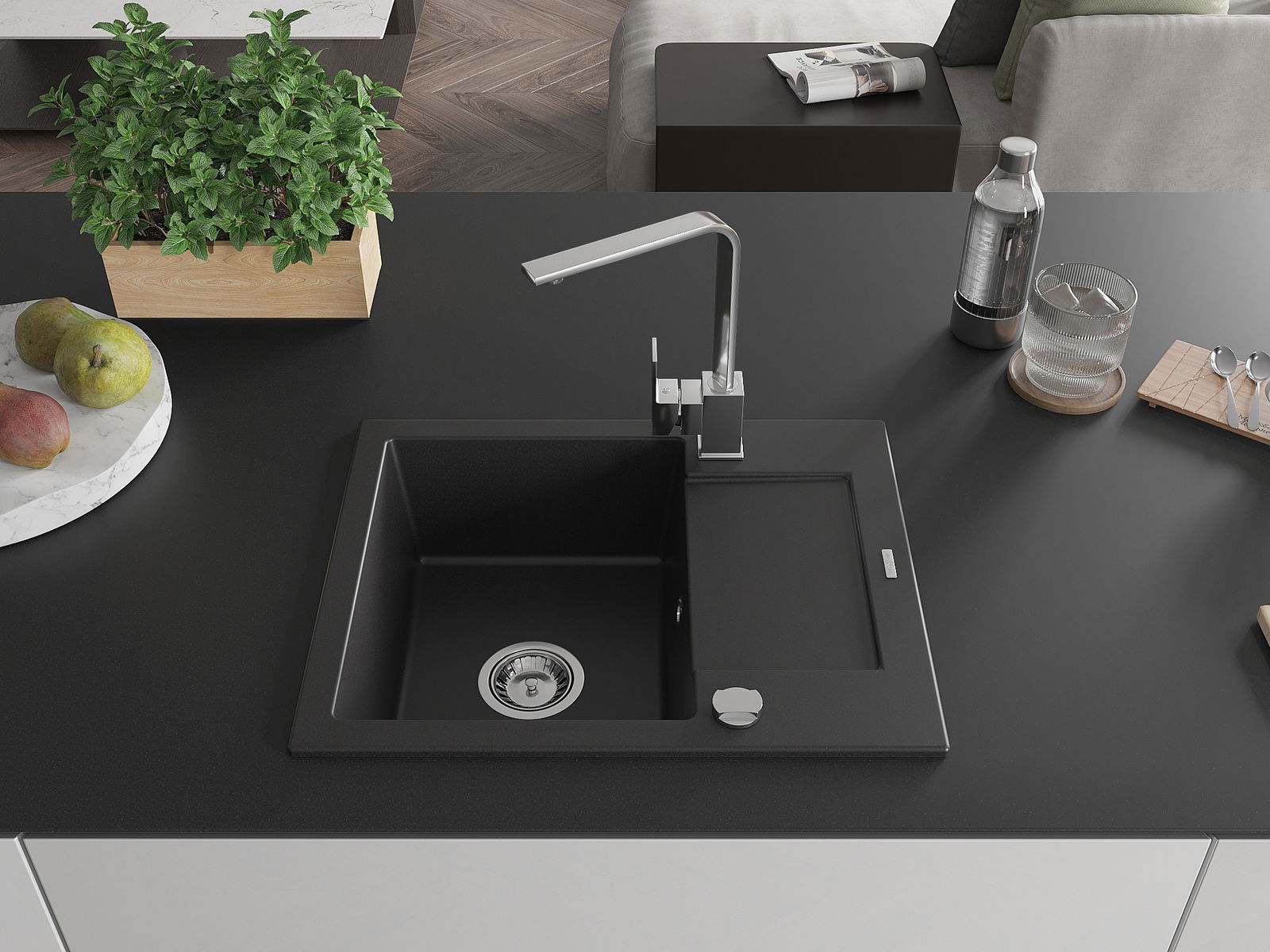 The sink is made of high quality granite. It is an elegant and, above all, practical complement to every kitchen, regardless of its style. High quality and granite durability ensure many years of use.