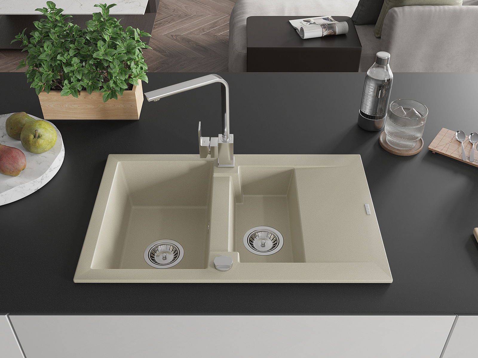 The sink is made of high quality granite. It is an elegant and, above all, practical complement to every kitchen, regardless of its style. High quality and granite durability ensure many years of use.