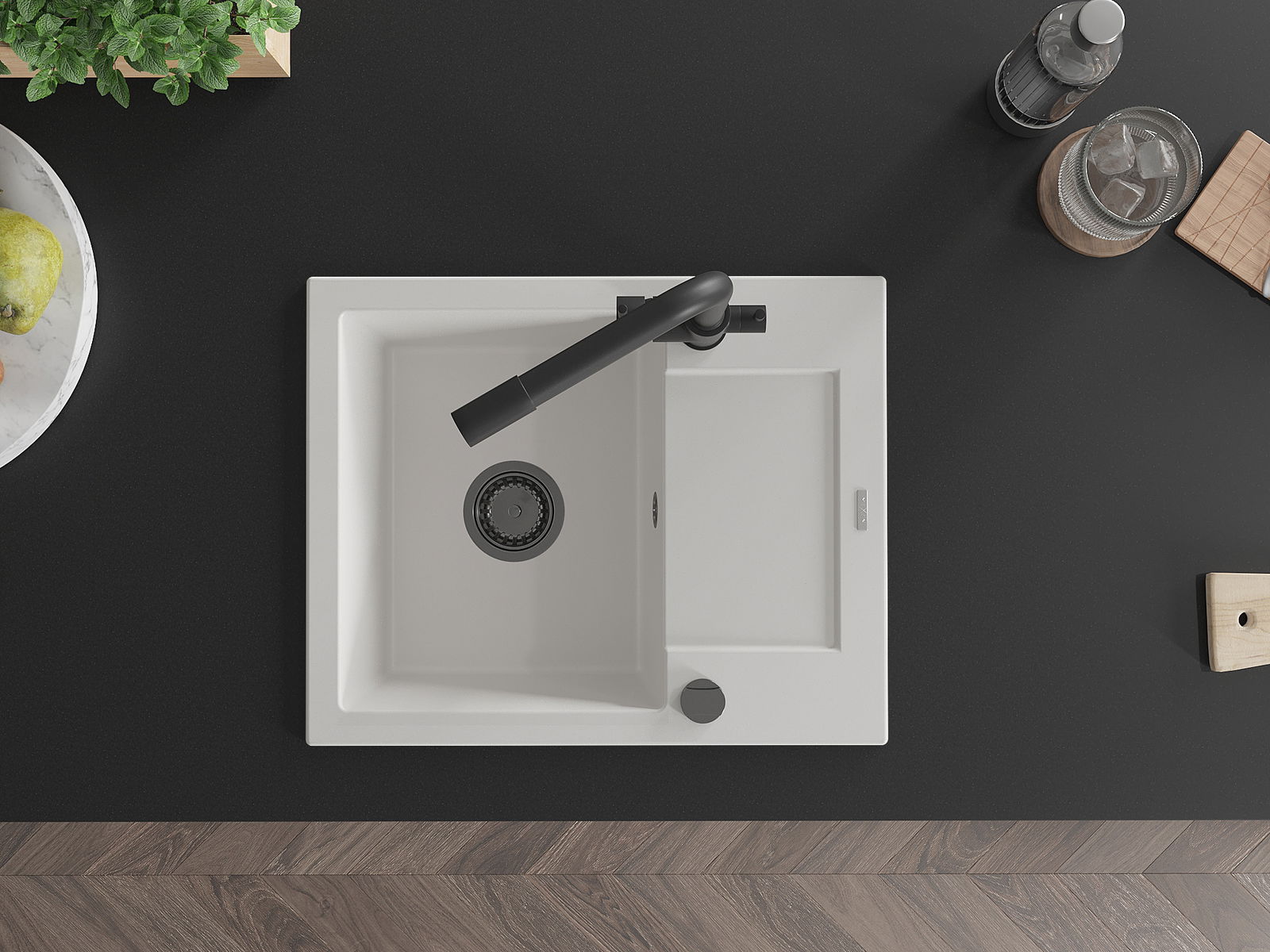 The sink is made of high quality granite. It is an elegant and, above all, practical complement to every kitchen, regardless of its style. High quality and granite durability ensure many years of use.
