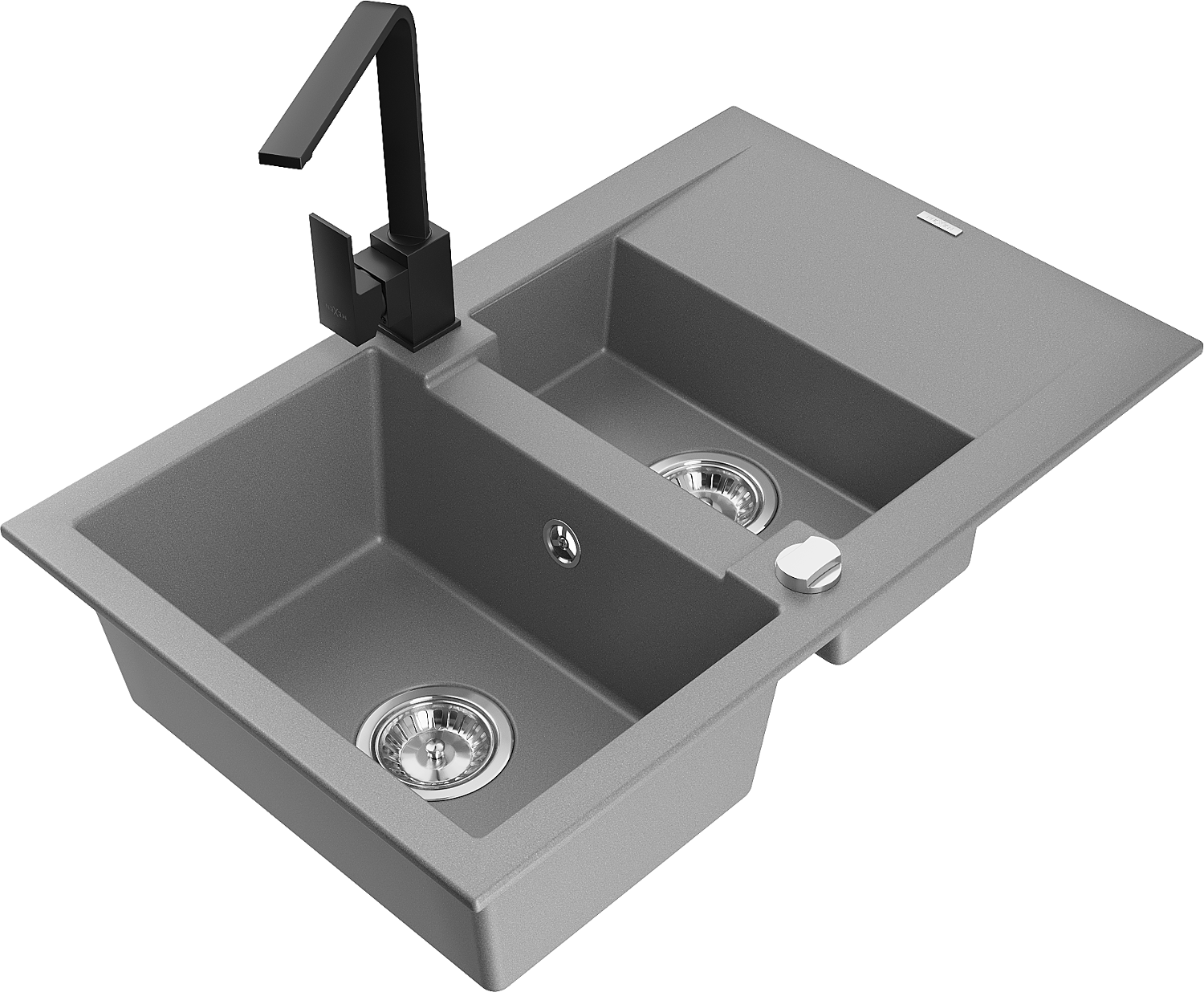 Mexen Gaspar granite sink 1.5-bowl with drainer and Rita kitchen tap, grey - 6507-71-670300-70