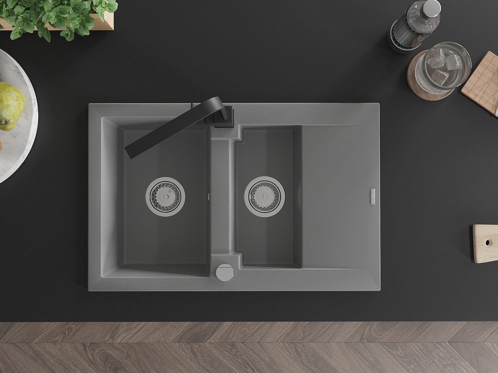 The sink is made of high quality granite. It is an elegant and, above all, practical complement to every kitchen, regardless of its style. High quality and granite durability ensure many years of use.