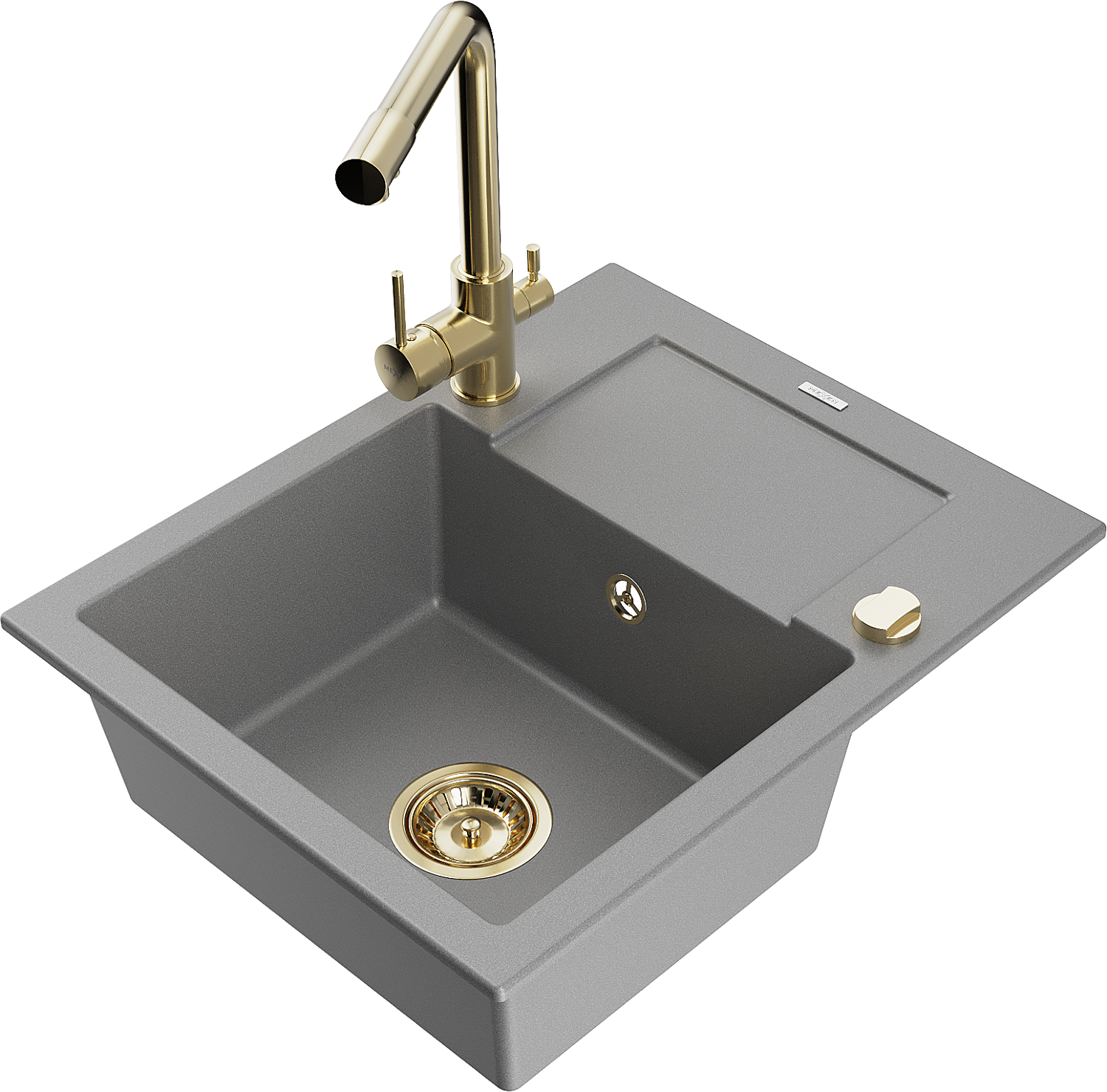 Mexen Enzo granite sink 1-bowl with drainer and Duero kitchen tap, grey - 6506-71-671600-50