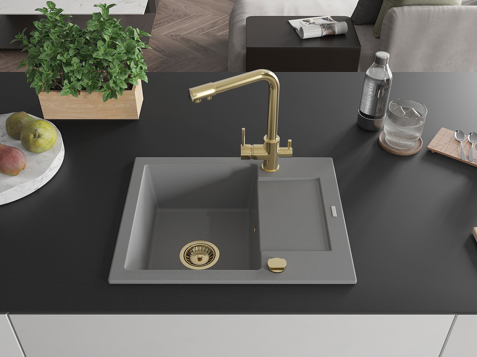 The sink is made of high quality granite. It is an elegant and, above all, practical complement to every kitchen, regardless of its style. High quality and granite durability ensure many years of use.