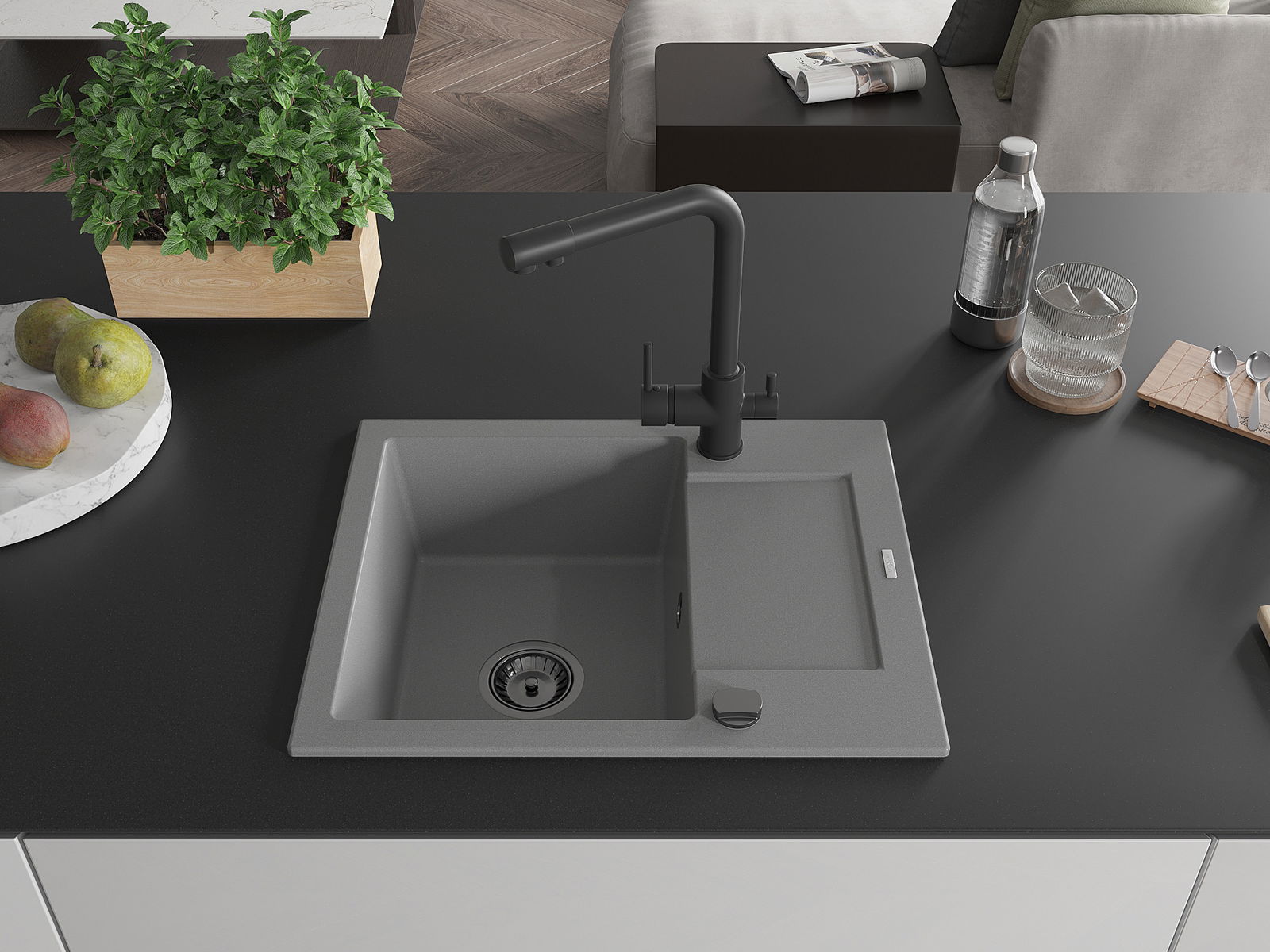 The sink is made of high quality granite. It is an elegant and, above all, practical complement to every kitchen, regardless of its style. High quality and granite durability ensure many years of use.
