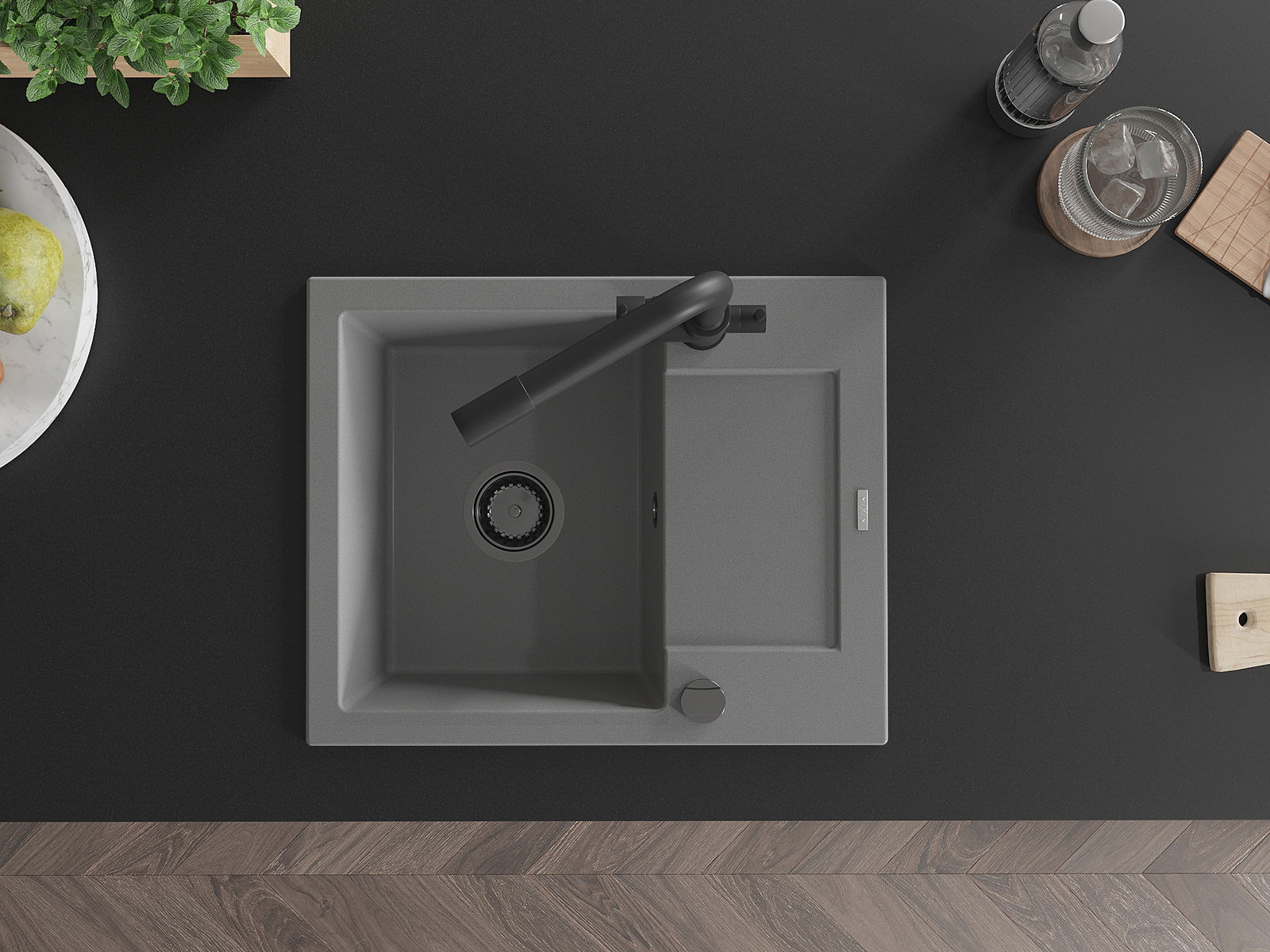 Mexen Enzo granite sink 1-bowl with drainer and Duero kitchen mixer tap, grey - 6506-71-671600-70-B