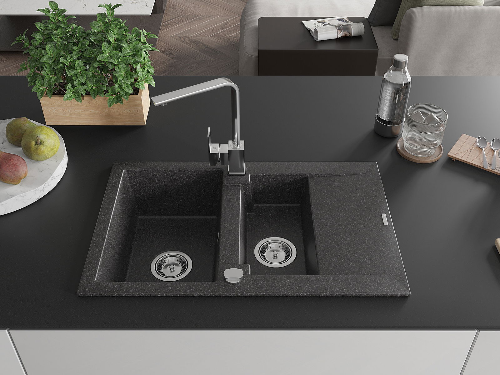 The sink is made of high quality granite. It is an elegant and, above all, practical complement to every kitchen, regardless of its style. High quality and granite durability ensure many years of use.