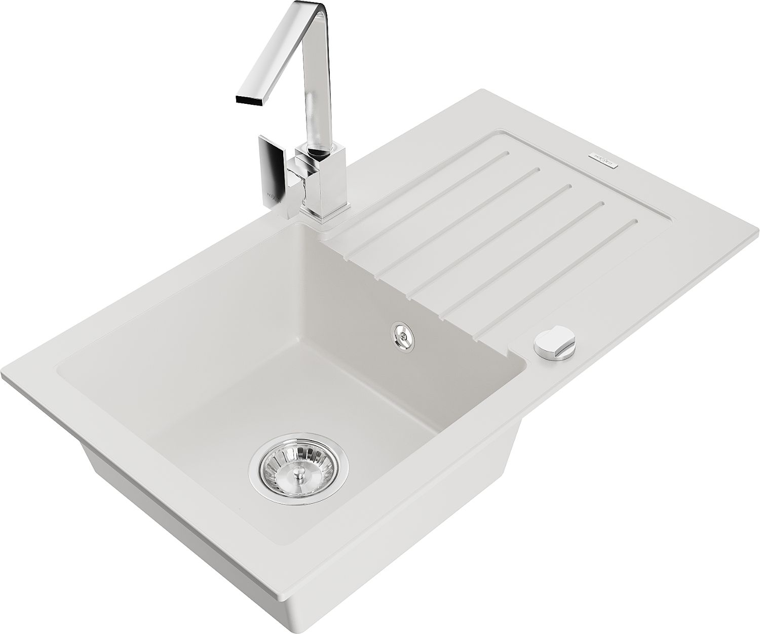 Mexen Pablo 1-bowl granite sink with drainer and Rita kitchen tap, white - 6510-20-670300-00