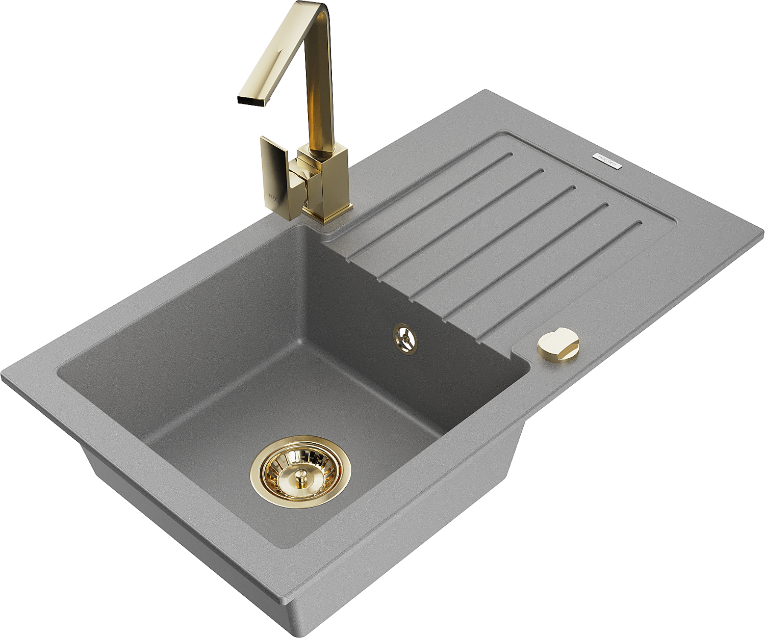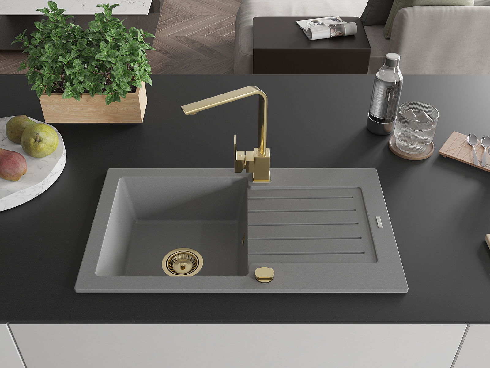 Mexen Pablo single-bowl granite sink with drainer and Rita kitchen tap, grey - 6510-71-670300-50