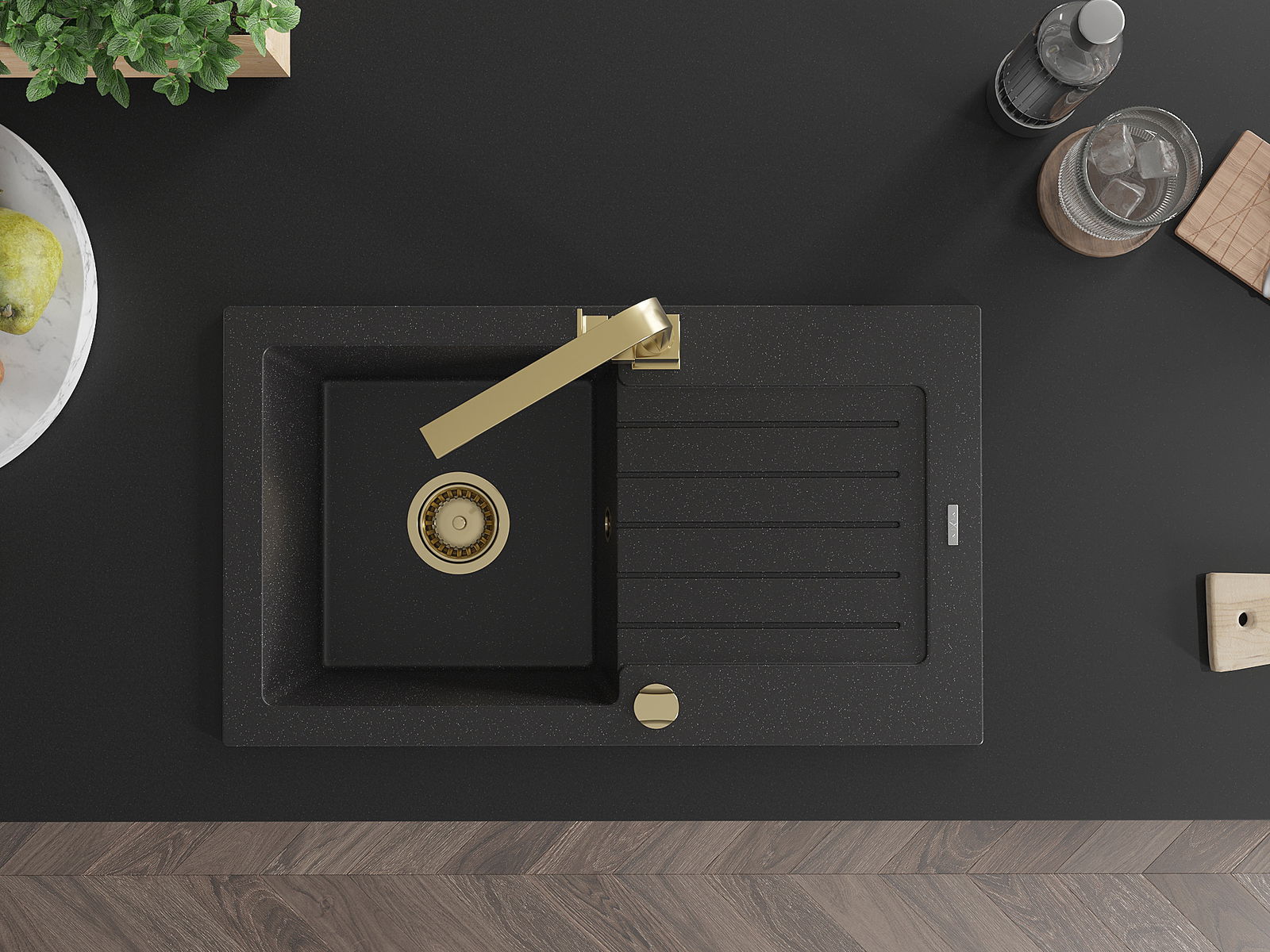 Choosing a sink with a draining board is a practical solution that allows you to set aside washed dishes or vegetables and fruits. The draining board makes daily cooking easier and helps maintain order in the kitchen.