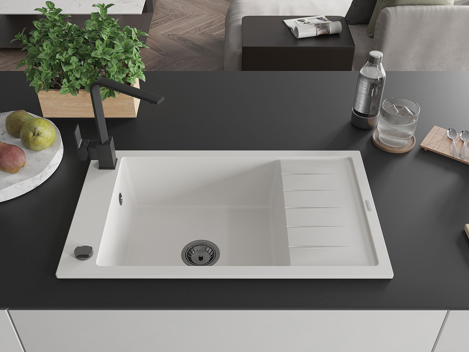 The surface of the sink is resistant to stains and discoloration, thanks to which it is easy to clean and retains its color for a long time. Aesthetic and practically complementing every kitchen.