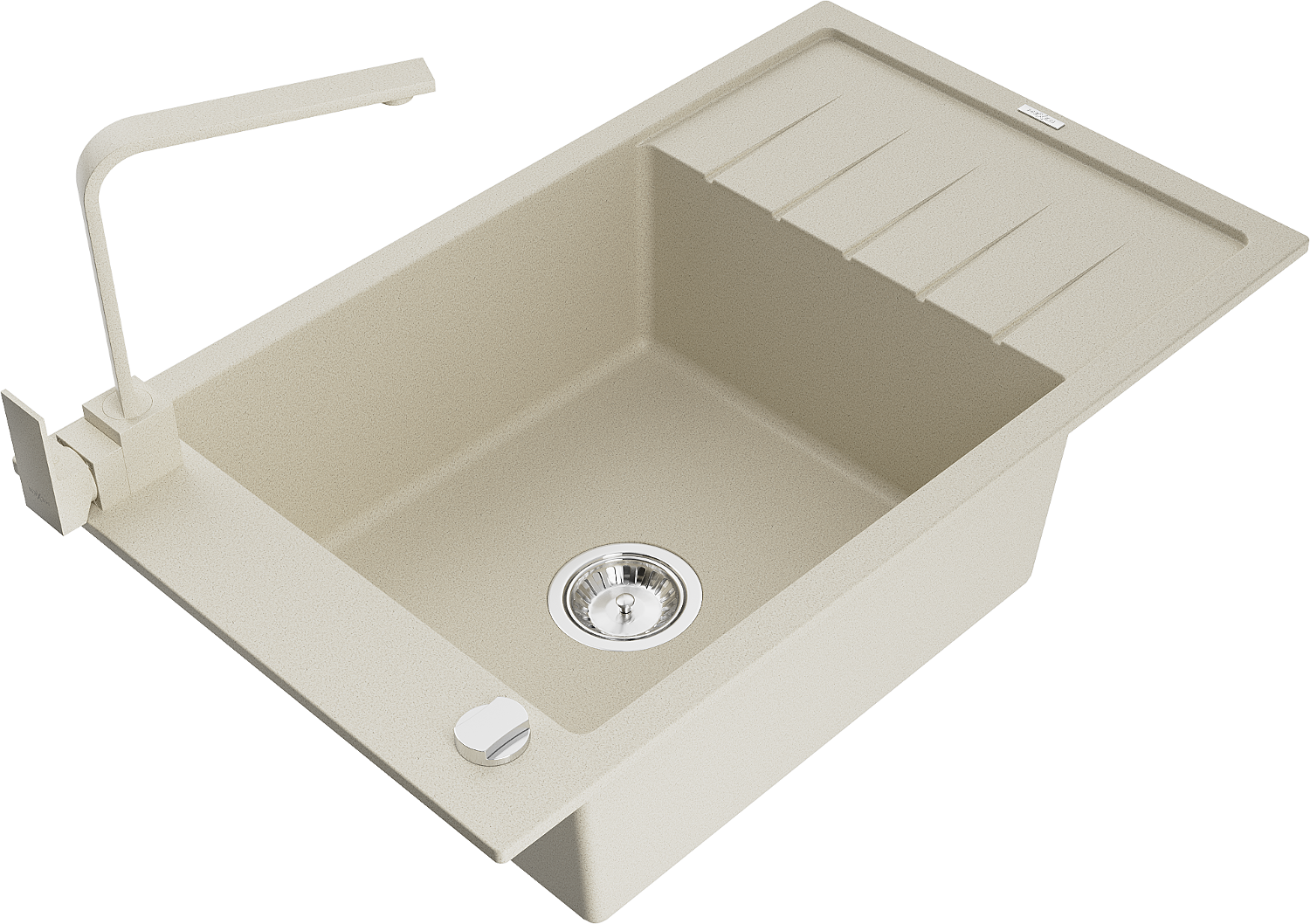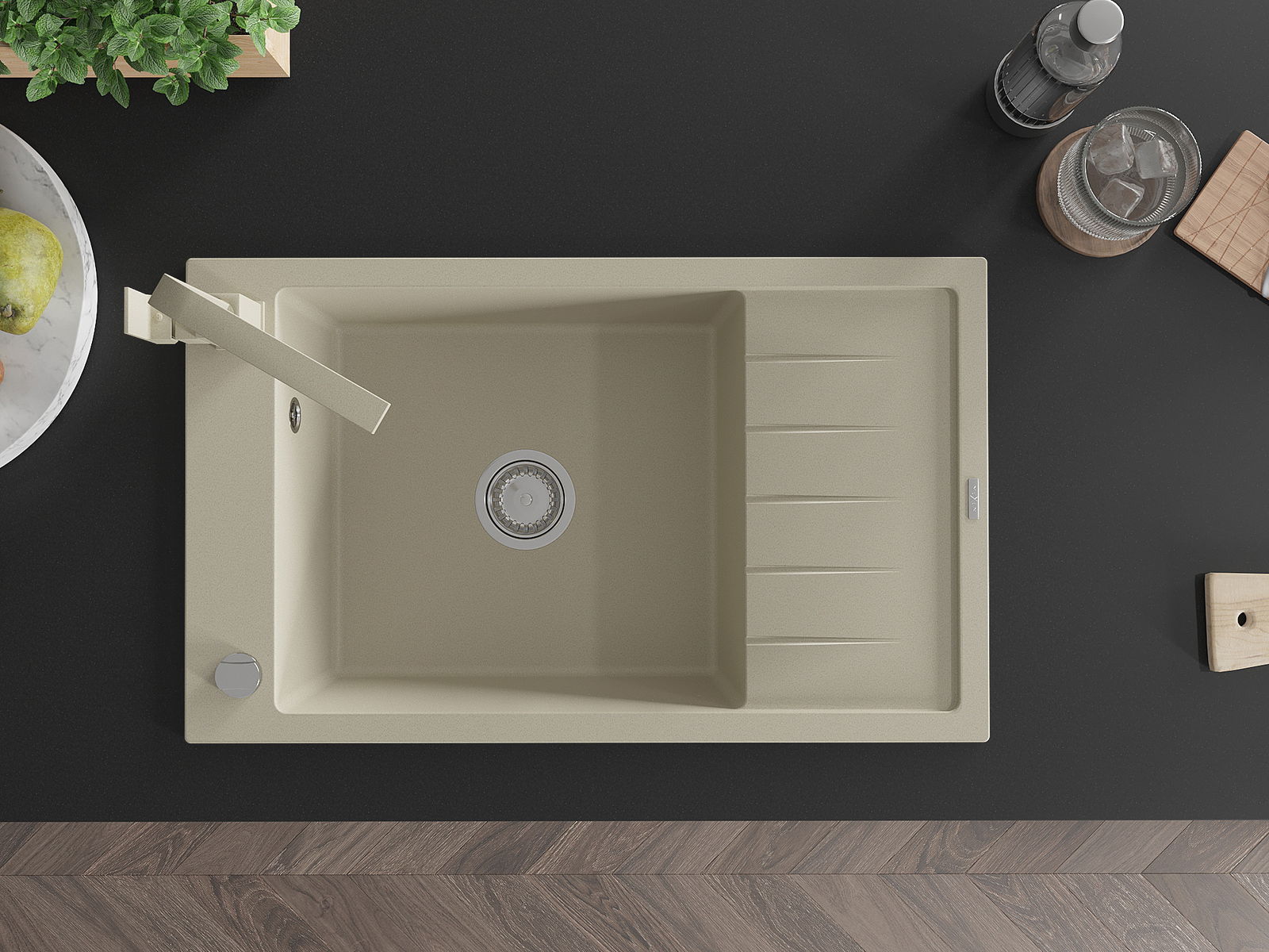Mexen Elias 1-bowl granite sink with drainer and Rita kitchen tap, beige - 6511-69-670300-69