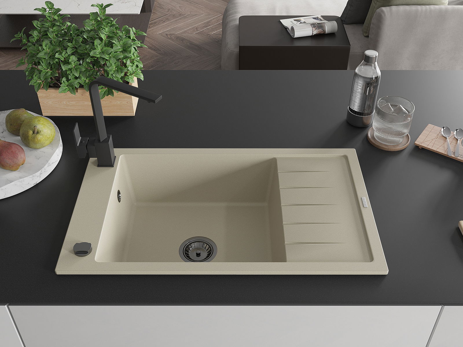 The sink is made of high quality granite. It is an elegant and, above all, practical complement to every kitchen, regardless of its style. High quality and granite durability ensure many years of use.