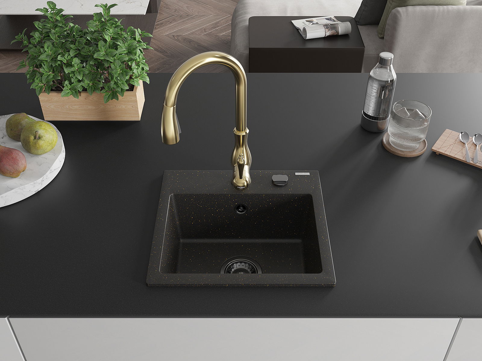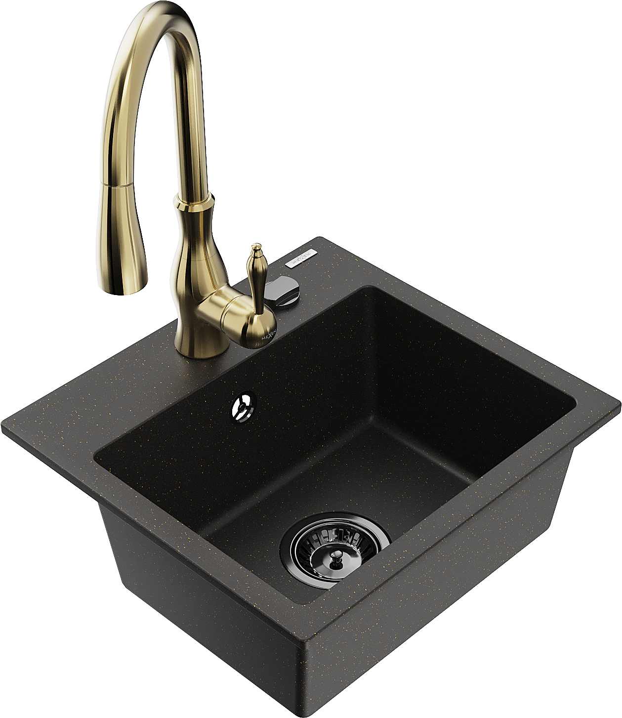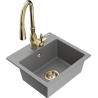 Mexen Milo 1-bowl granite sink with Savita kitchen tap, black/gold metallic - 6505-75-672601-50-B