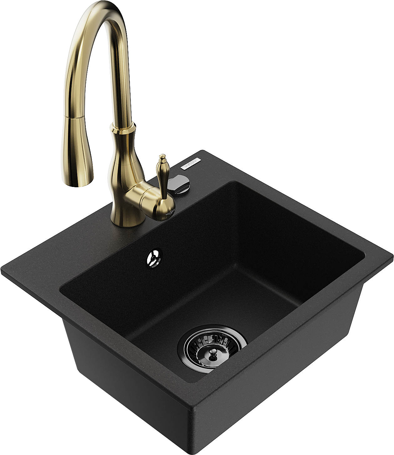 Mexen Milo single-bowl granite sink with Savita kitchen tap, black - 6505-77-672601-50-B