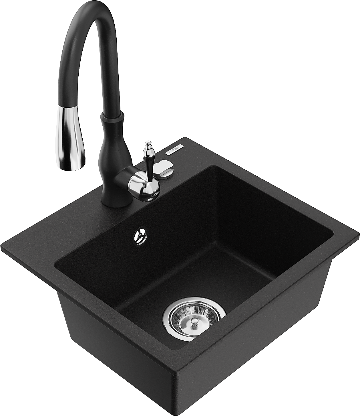 Mexen Milo single-bowl granite sink with Savita kitchen tap, black - 6505-77-672601-70