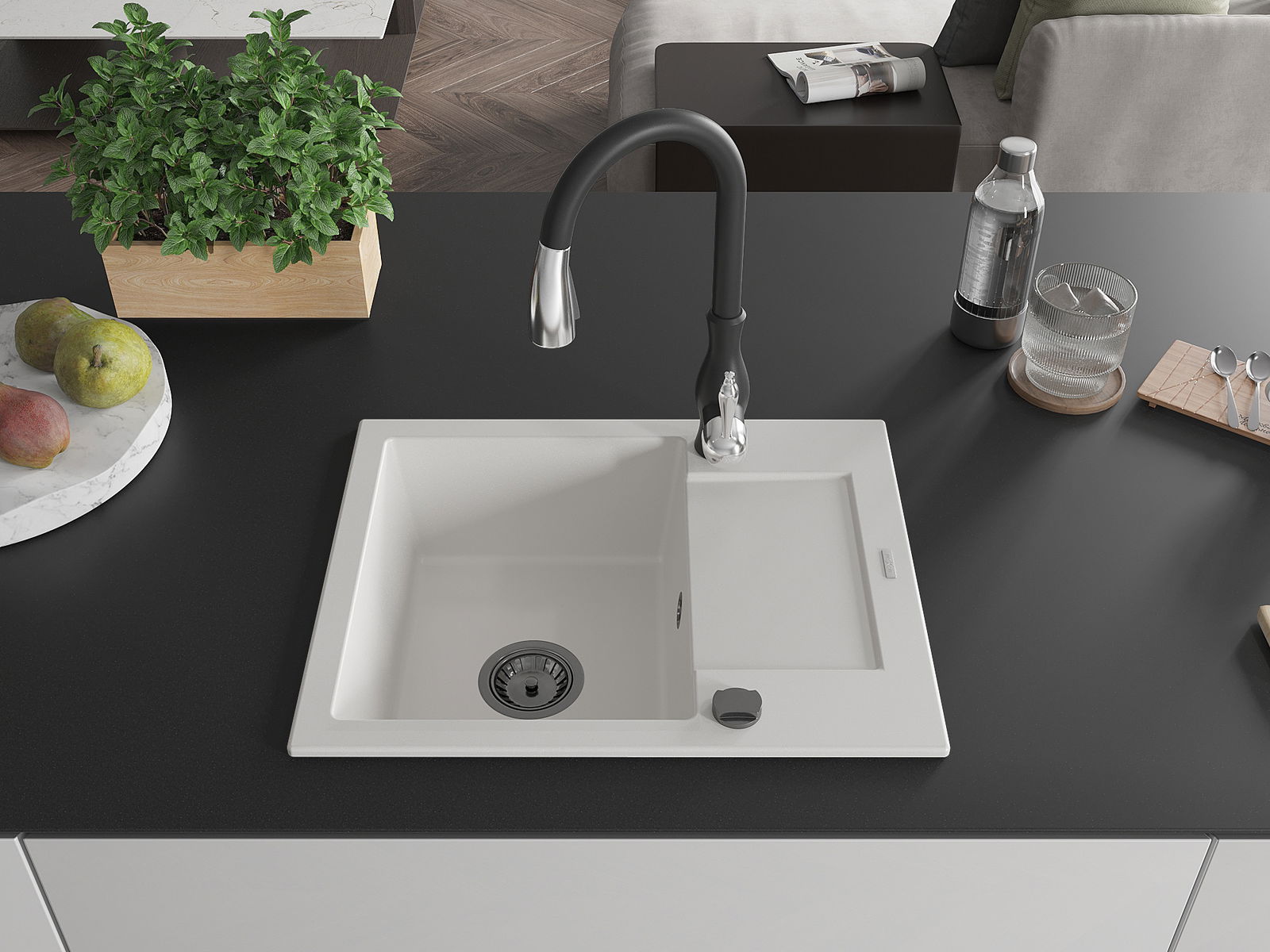 The surface of the sink is resistant to stains and discoloration, thanks to which it is easy to clean and retains its color for a long time. Aesthetic and practically complementing every kitchen.