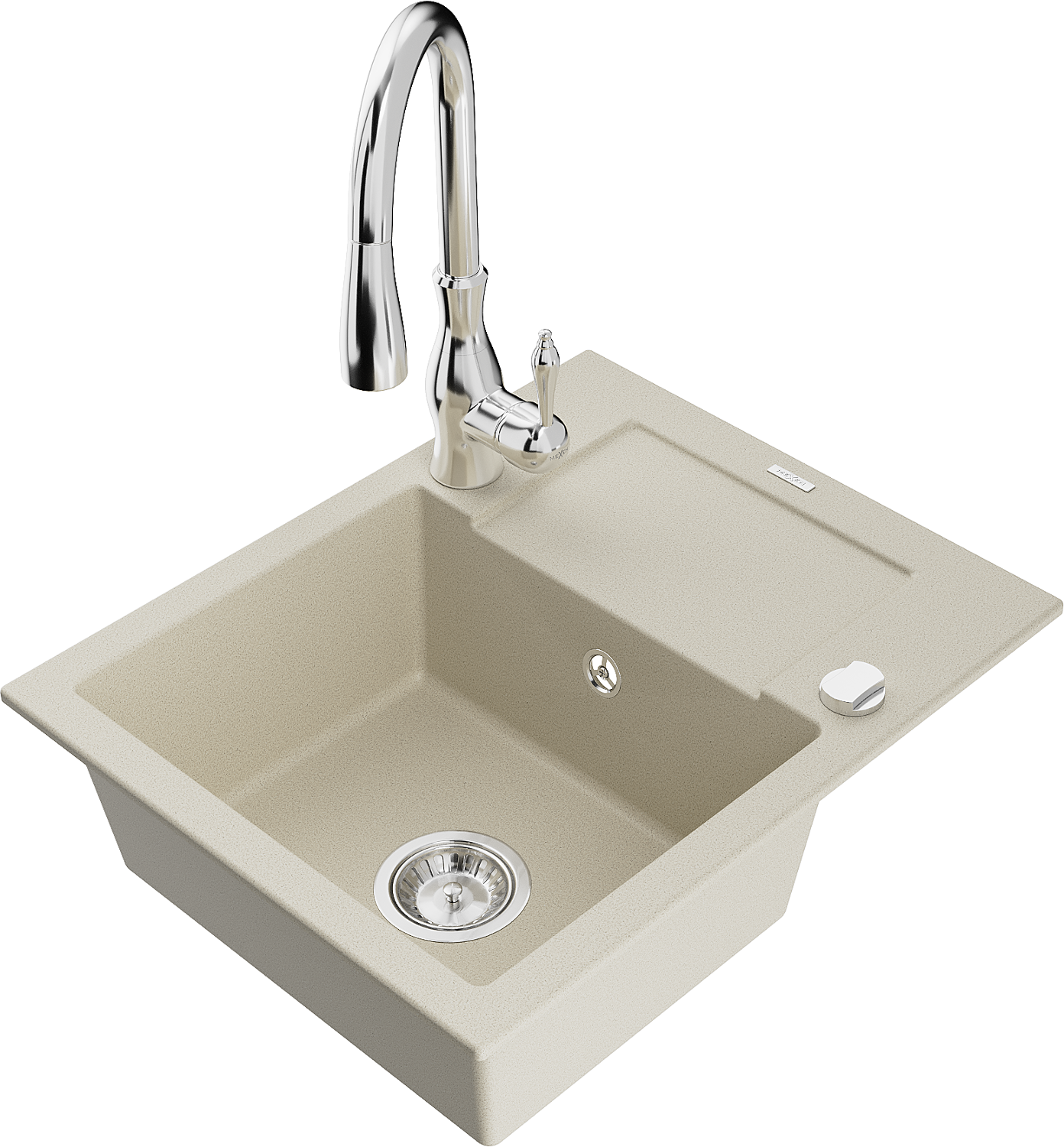 Mexen Enzo 1-bowl granite sink with drainer and Savita kitchen tap, beige - 6506-69-672601-00