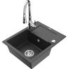 Mexen Enzo granite sink single-bowl with drainer and Savita kitchen tap, grey - 6506-71-672601-00