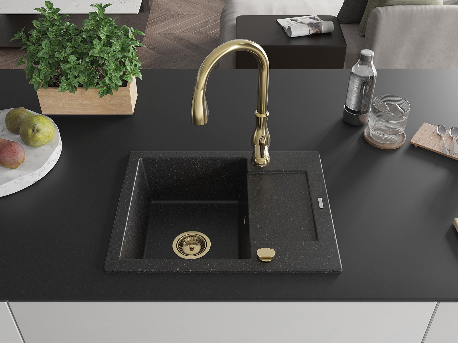 The sink is made of high quality granite. It is an elegant and, above all, practical complement to every kitchen, regardless of its style. High quality and granite durability ensure many years of use.