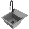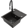 Mexen Enzo granite sink single bowl with drainer and Savita kitchen tap, black/silver metallic - 6506-73-672601-70-B
