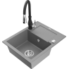 Mexen Enzo granite sink 1-bowl with drainer and Savita kitchen tap, black/silver metallic - 6506-73-672601-70