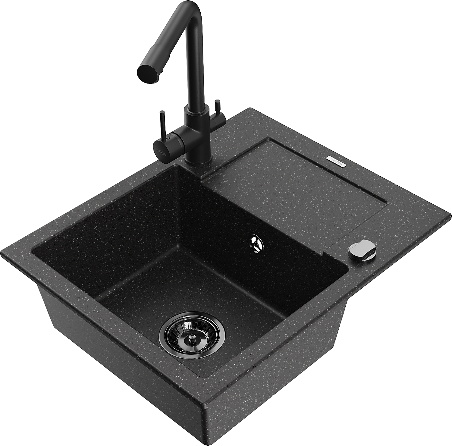 Mexen Enzo 1-bowl granite sink with drainer and Duero kitchen tap, black/silver metallic - 6506-73-671600-70-B