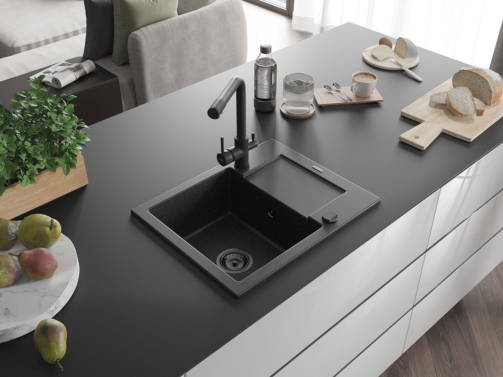 The sink is made of high quality granite. It is an elegant and, above all, practical complement to every kitchen, regardless of its style. High quality and granite durability ensure many years of use.