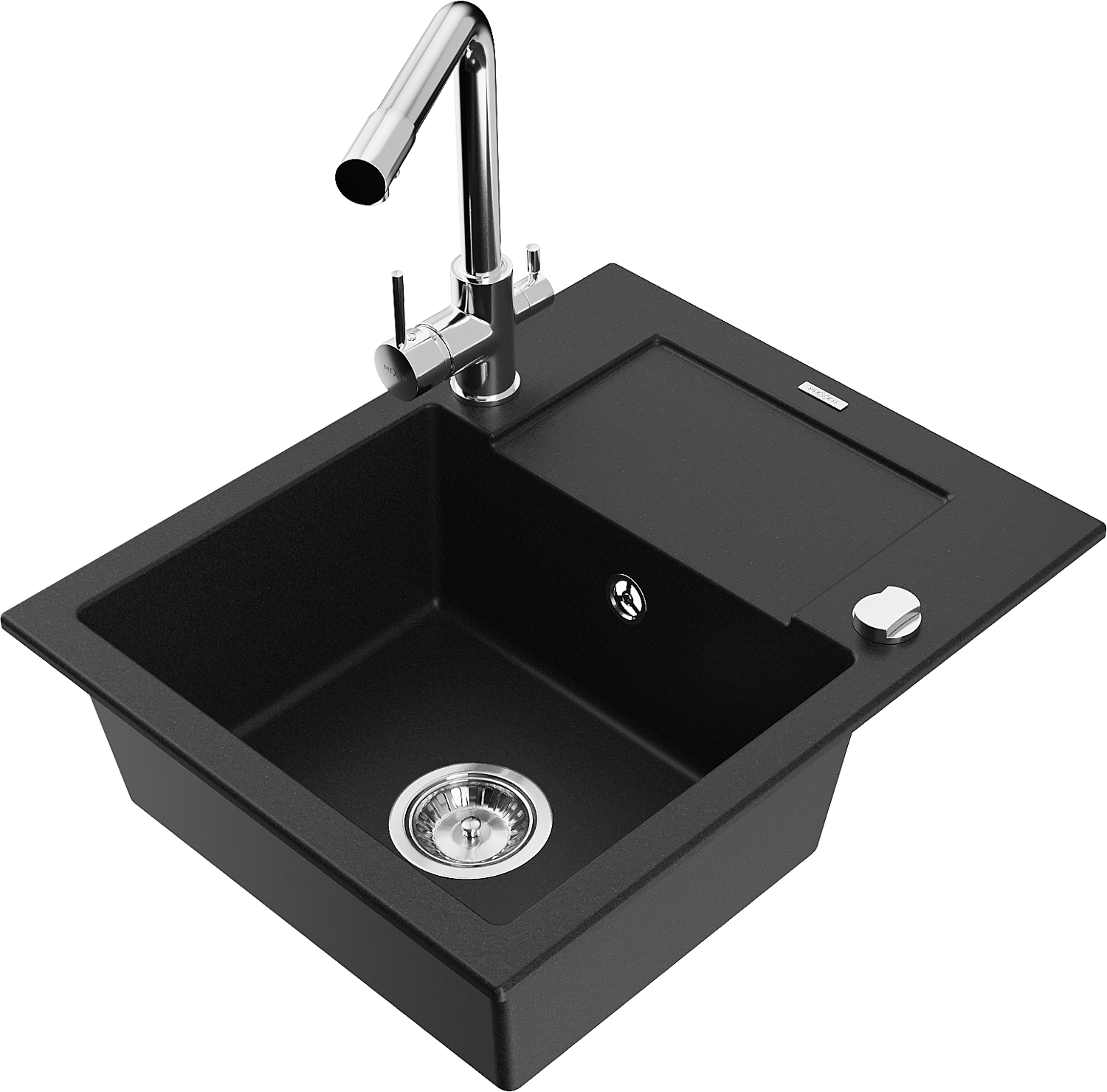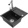Mexen Enzo granite sink 1-bowl with drainer and Duero kitchen tap, black - 6506-77-671600-00