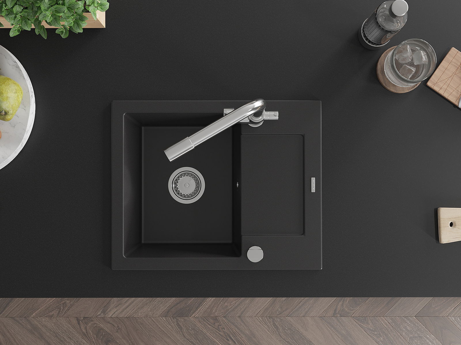 The sink is made of high quality granite. It is an elegant and, above all, practical complement to every kitchen, regardless of its style. High quality and granite durability ensure many years of use.