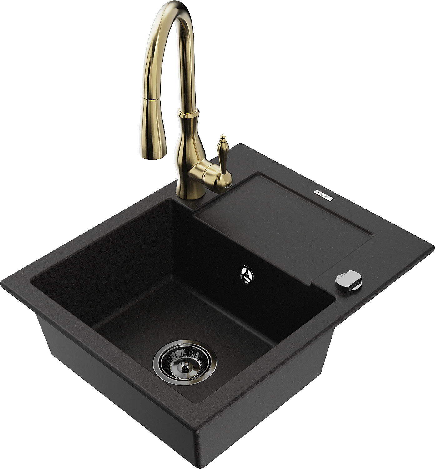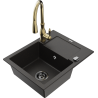 Mexen Enzo 1-Bowl Granite Kitchen Sink with Drainer and Savita Mixer Tap, Black - 6506-77-672601-50-B