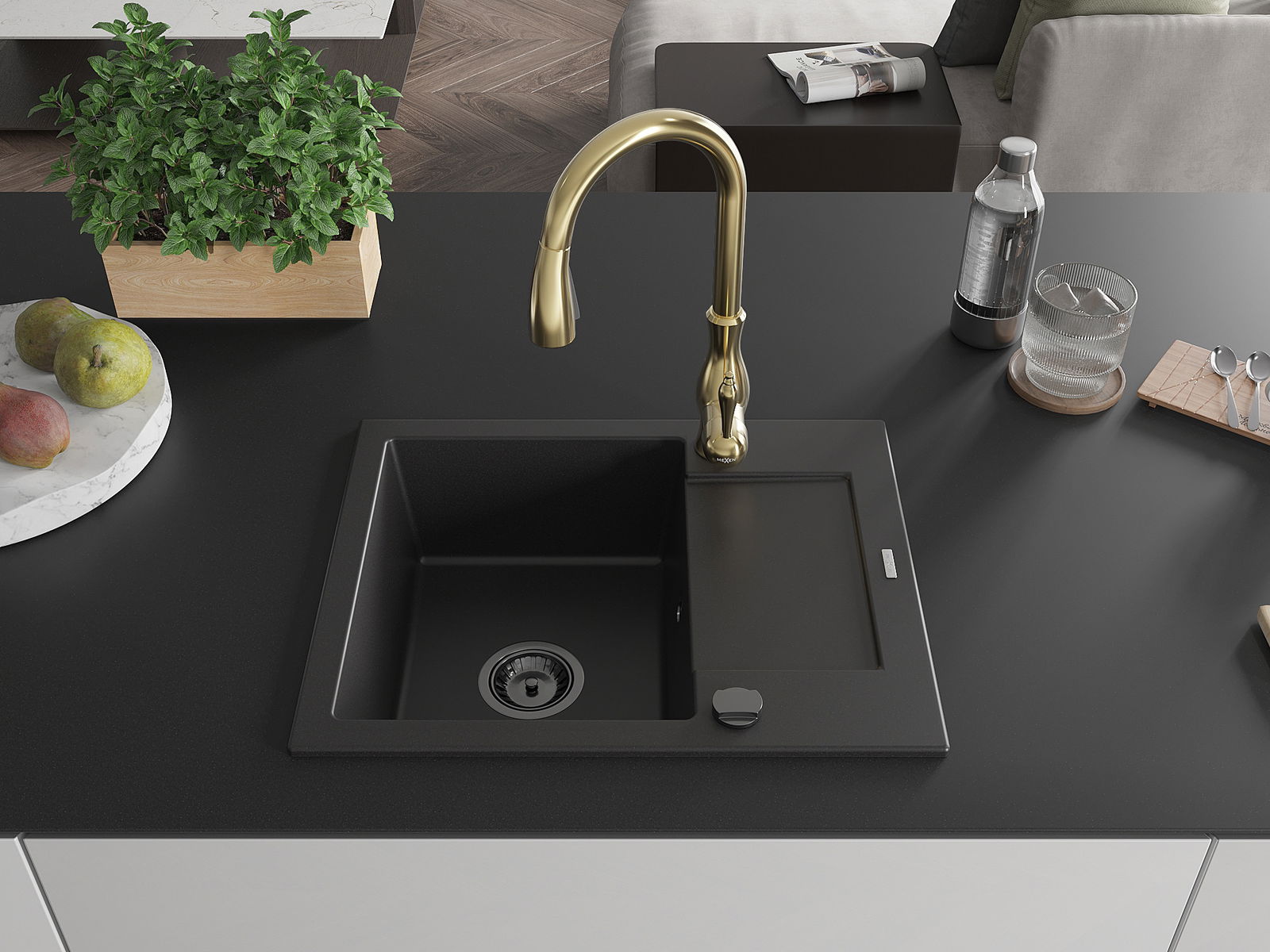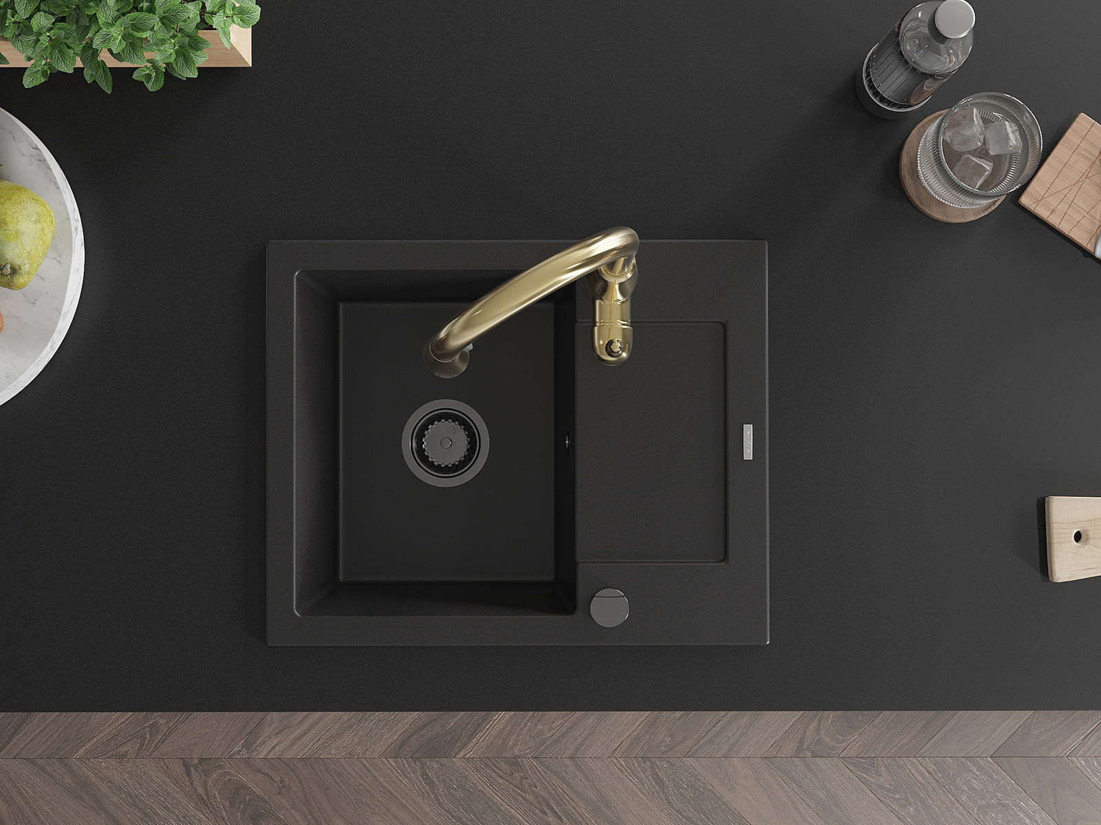 The sink is made of high quality granite. It is an elegant and, above all, practical complement to every kitchen, regardless of its style. High quality and granite durability ensure many years of use.