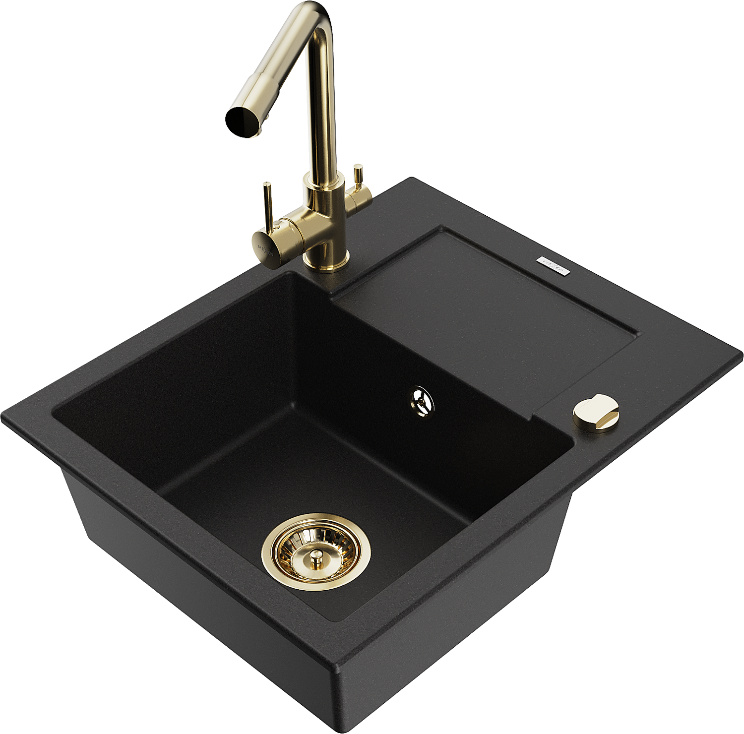 Mexen Enzo 1-bowl granite sink with drainer and Duero kitchen tap, black - 6506-77-671600-50