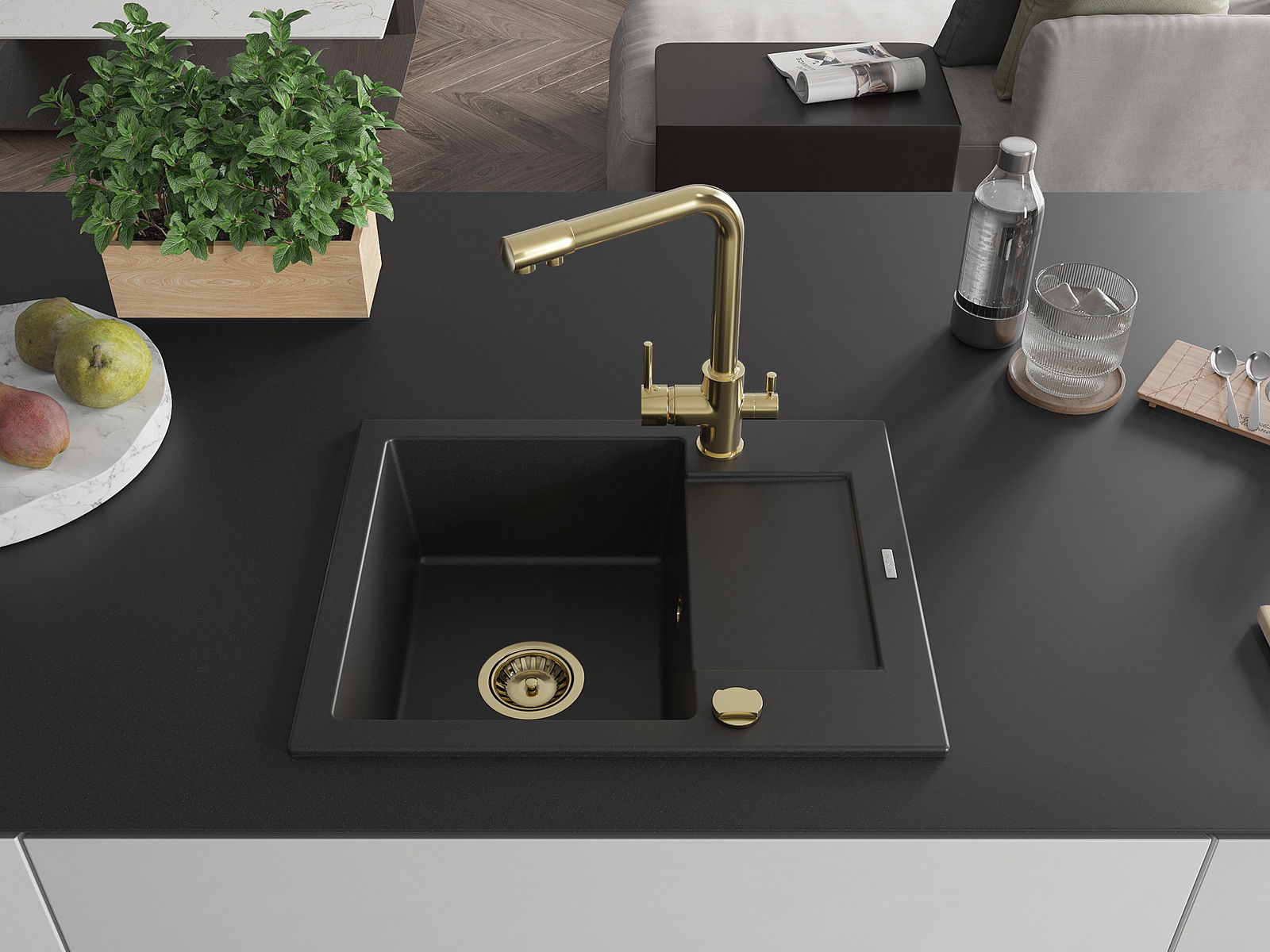 The sink is made of high quality granite. It is an elegant and, above all, practical complement to every kitchen, regardless of its style. High quality and granite durability ensure many years of use.