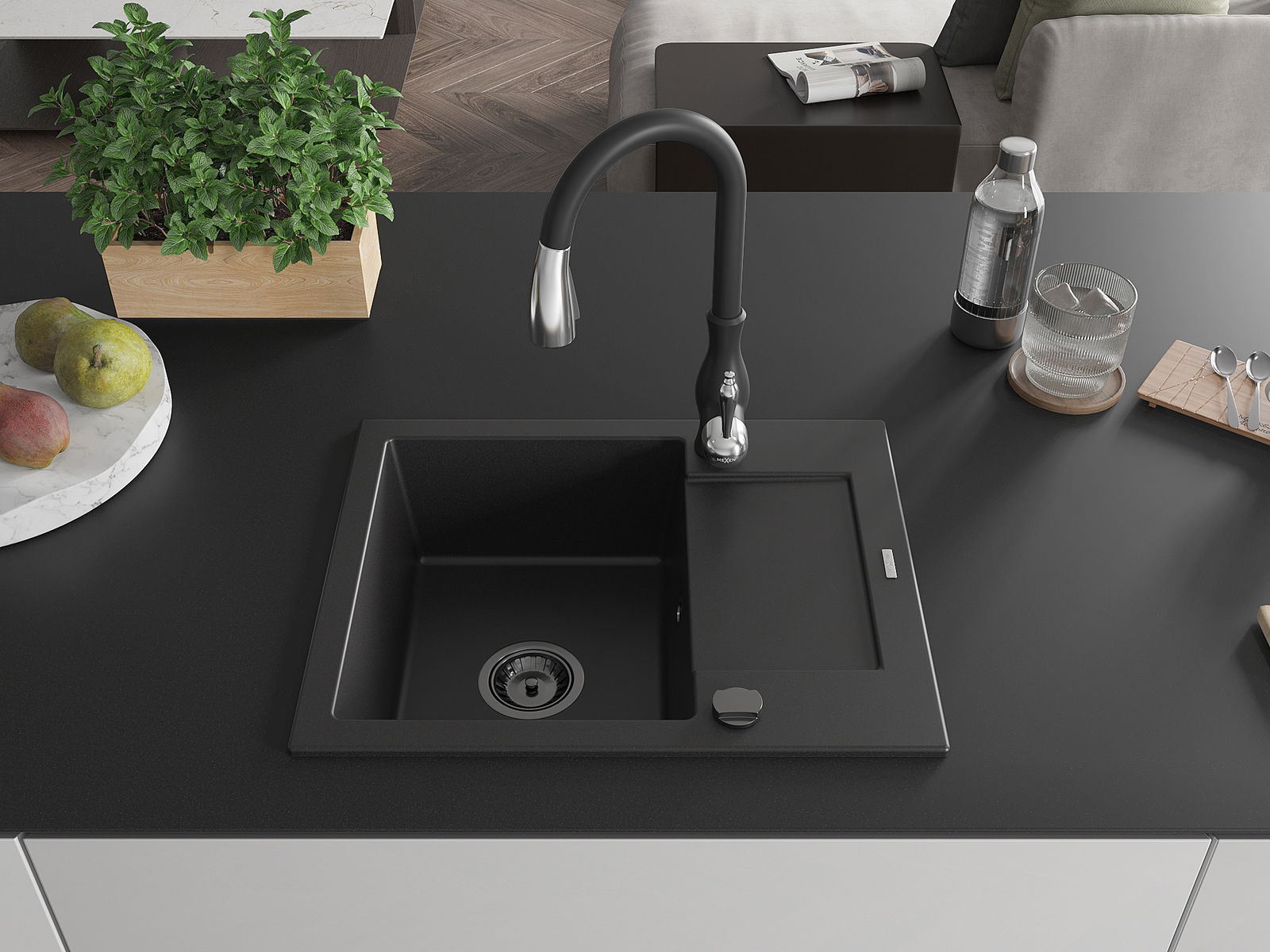 The sink is made of high quality granite. It is an elegant and, above all, practical complement to every kitchen, regardless of its style. High quality and granite durability ensure many years of use.